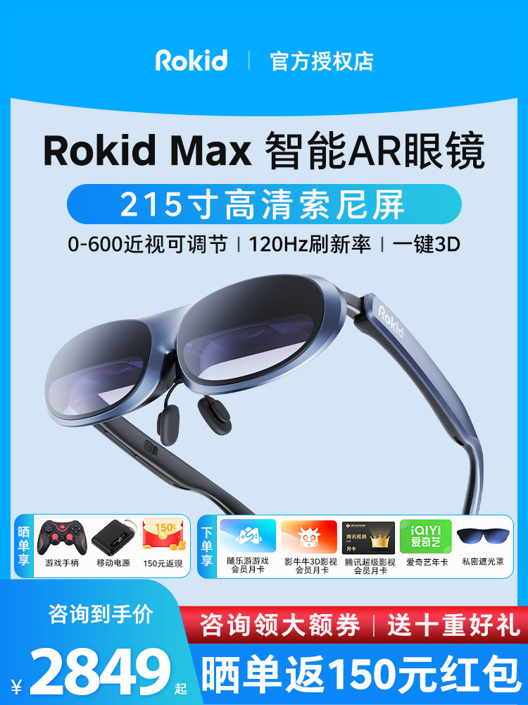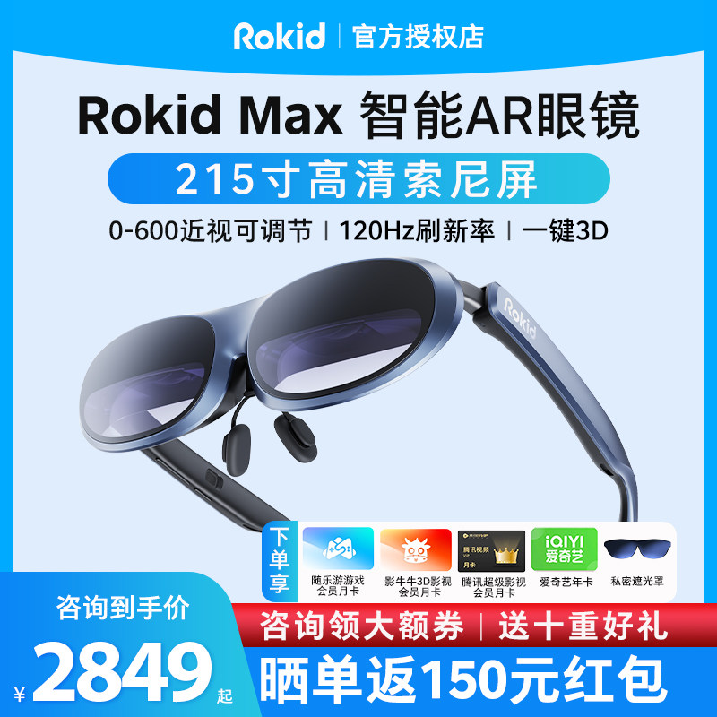 【咨询领大额券】Rokid Max智能AR眼镜3D游戏观影设备station便携ar眼镜投屏手机用vr一体机高清air显示器
