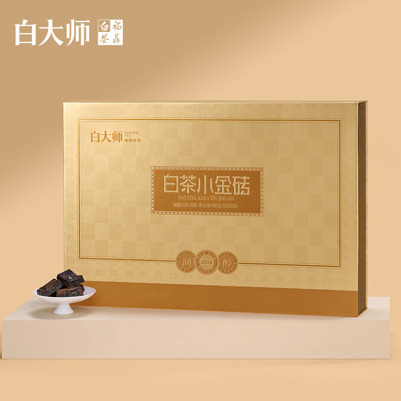 白大师高山福鼎白茶2020年贡眉小金砖自饮送礼茶叶礼盒180g