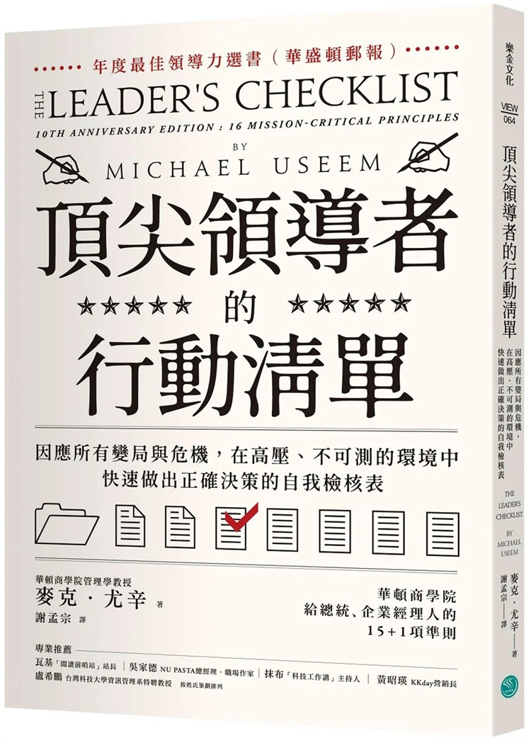 现货 ding尖领导者的行动清单:在高压、不可测的环境中,快速做出正确决策的自我检核表 23 麦克.尤辛 乐金文化 进口原版