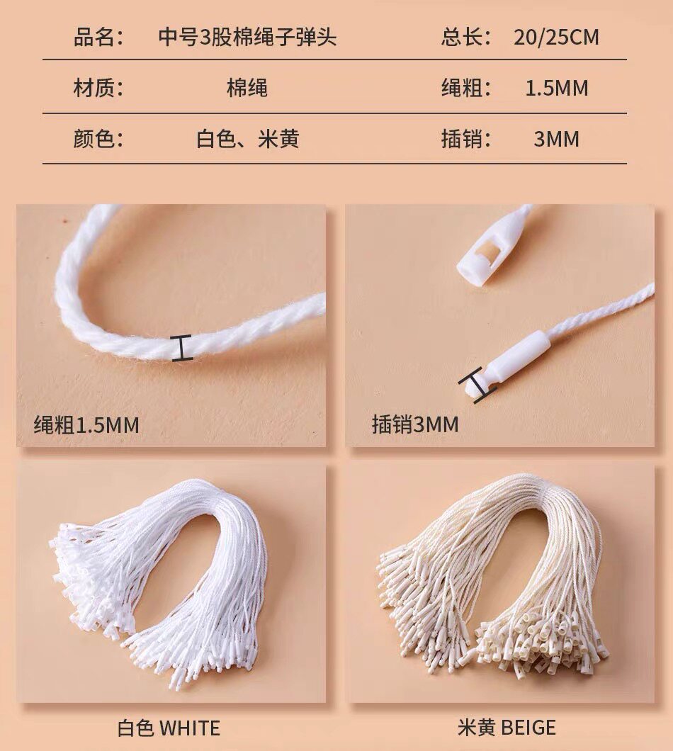 服装吊粒子弹头吊粒吊牌中号圆头三股棉多材质挂绳19-20CM通用