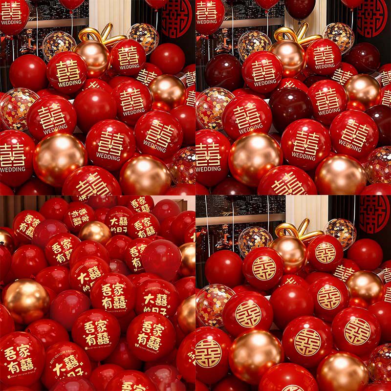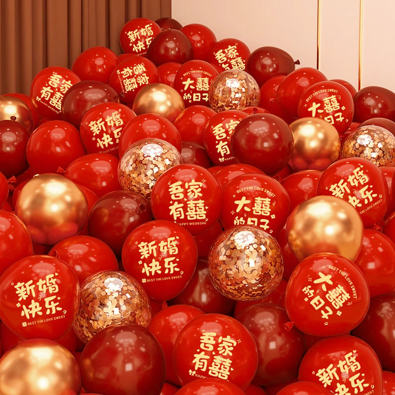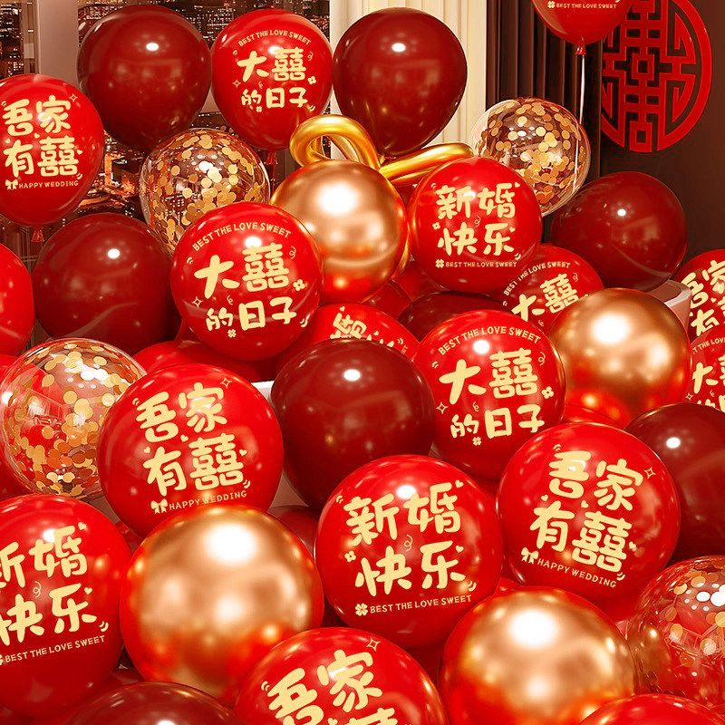 红色金色喜字结婚气球婚礼婚庆婚房氛围布置农村路引拱门装饰道具