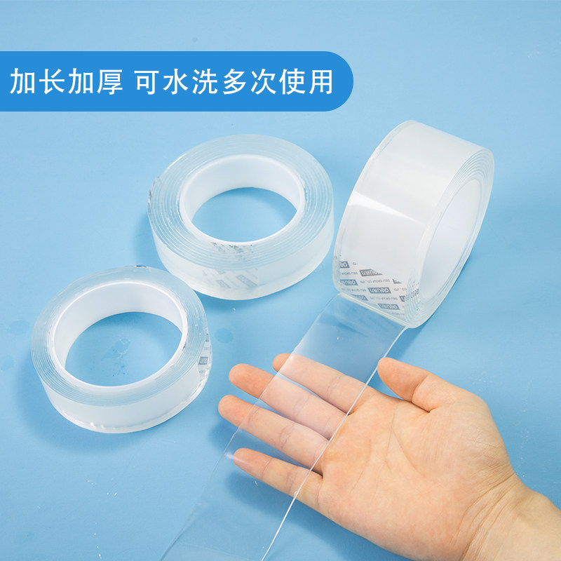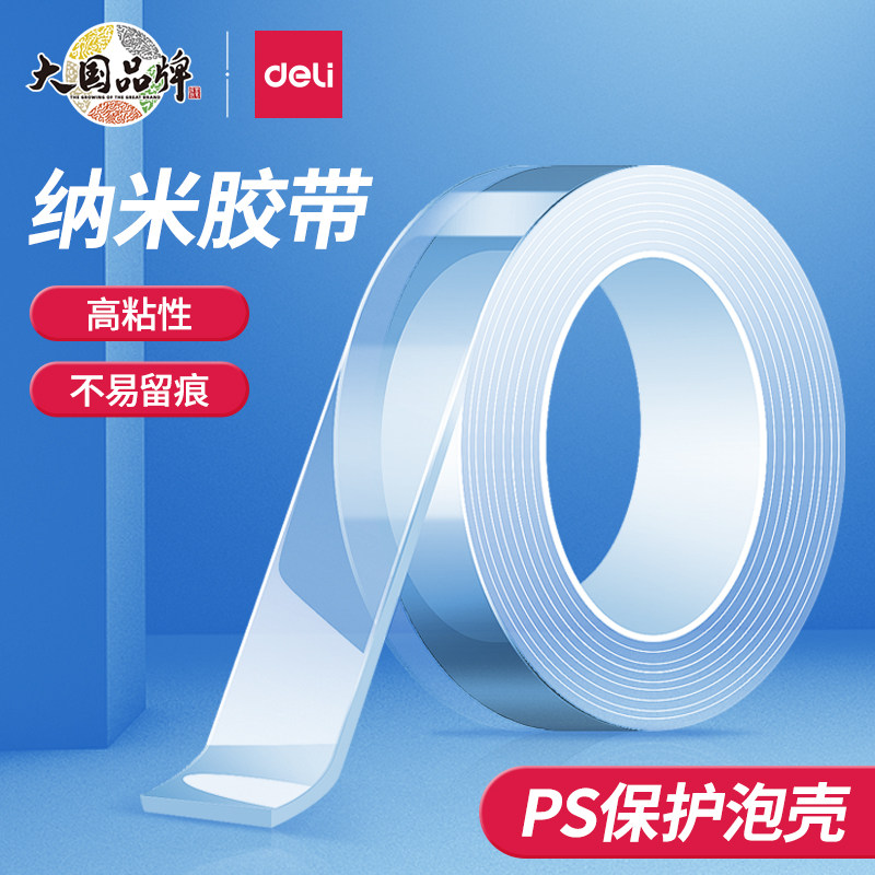 【双12价】得力纳米双面胶透明亚克力胶带高粘度不易留痕3m易撕不易留残胶办公家用高透防水防潮可水洗画框挂钩固定