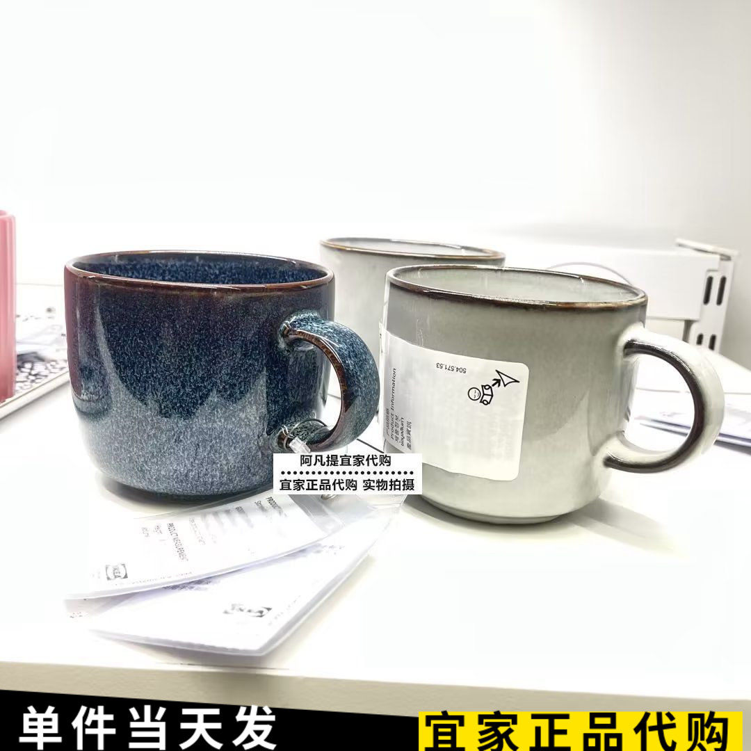 宜家格拉德里杯子370ml带把手水杯日式复古灰色咖啡茶杯国内代购
