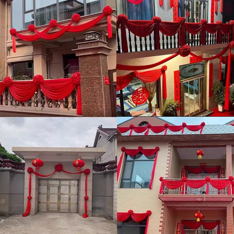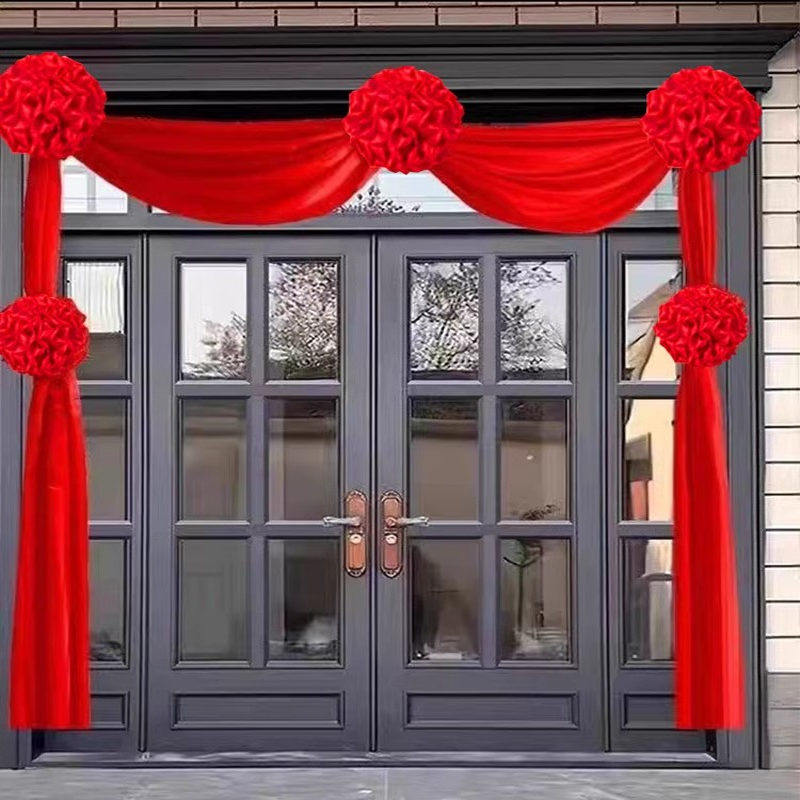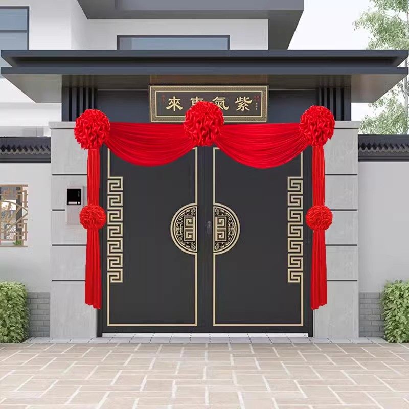 大红花球结婚单元门农村大门装饰乔迁婚房门头花绸缎红布门彩绣球