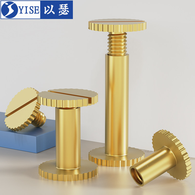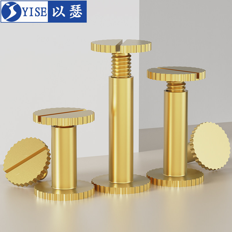 黄铜子母铆钉铜夹板螺丝对锁相册账本一字平头滚花对接螺钉M4M5