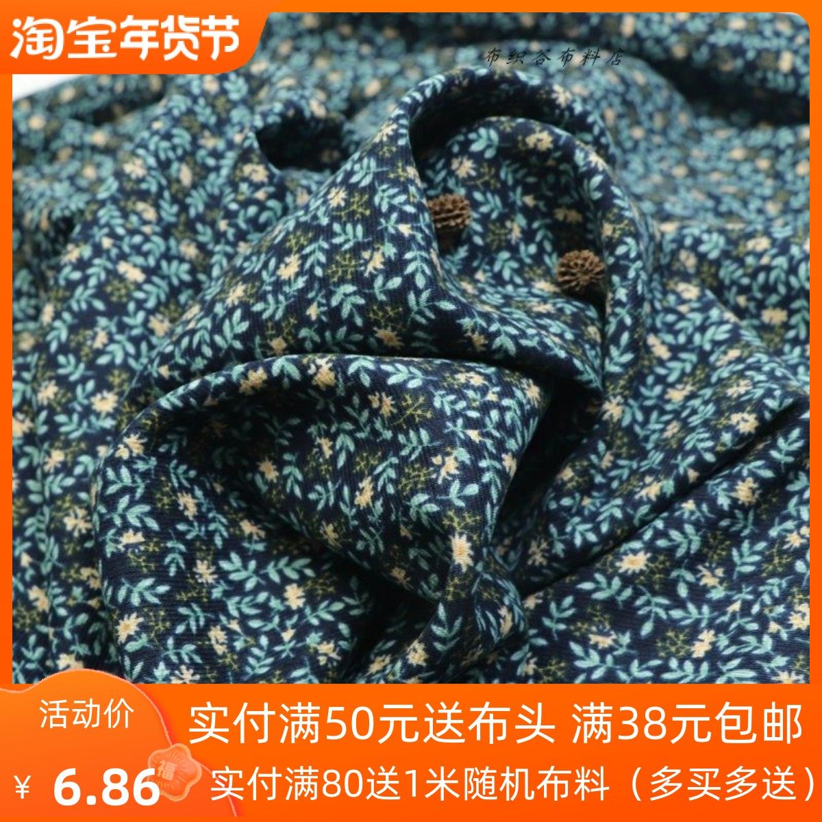 日单青蓝绿色小碎花混纺灯芯绒布料秋冬连衣裙子裤子上衣服装面料