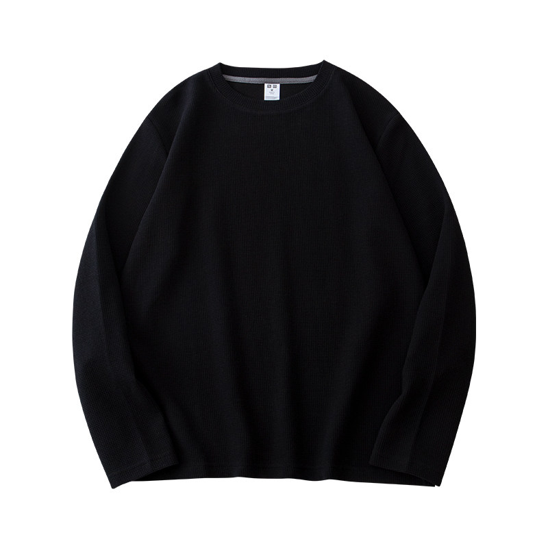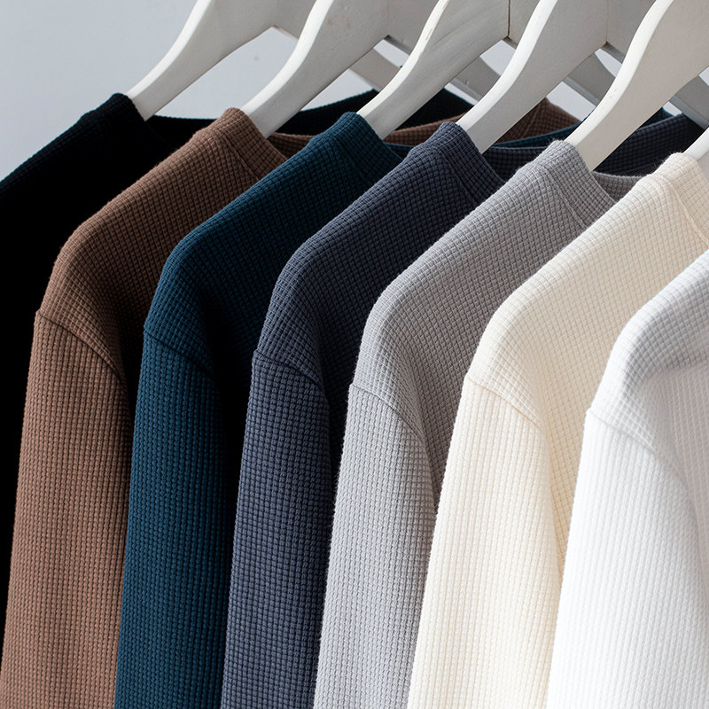 华夫格长袖t恤男秋冬白色男装短袖宽松卫衣男款内搭打底衫上衣夏