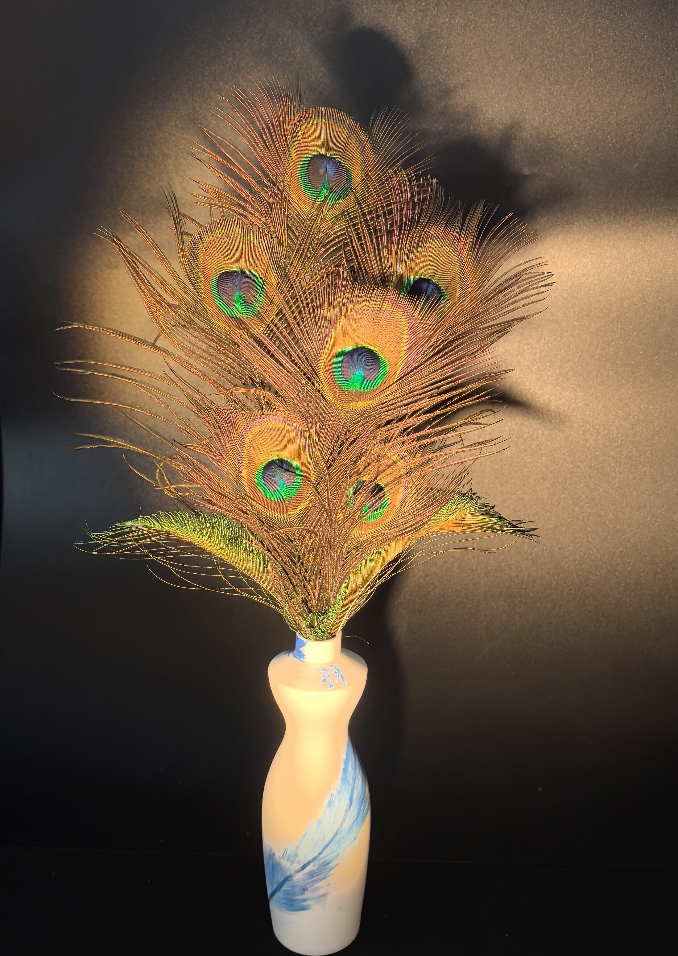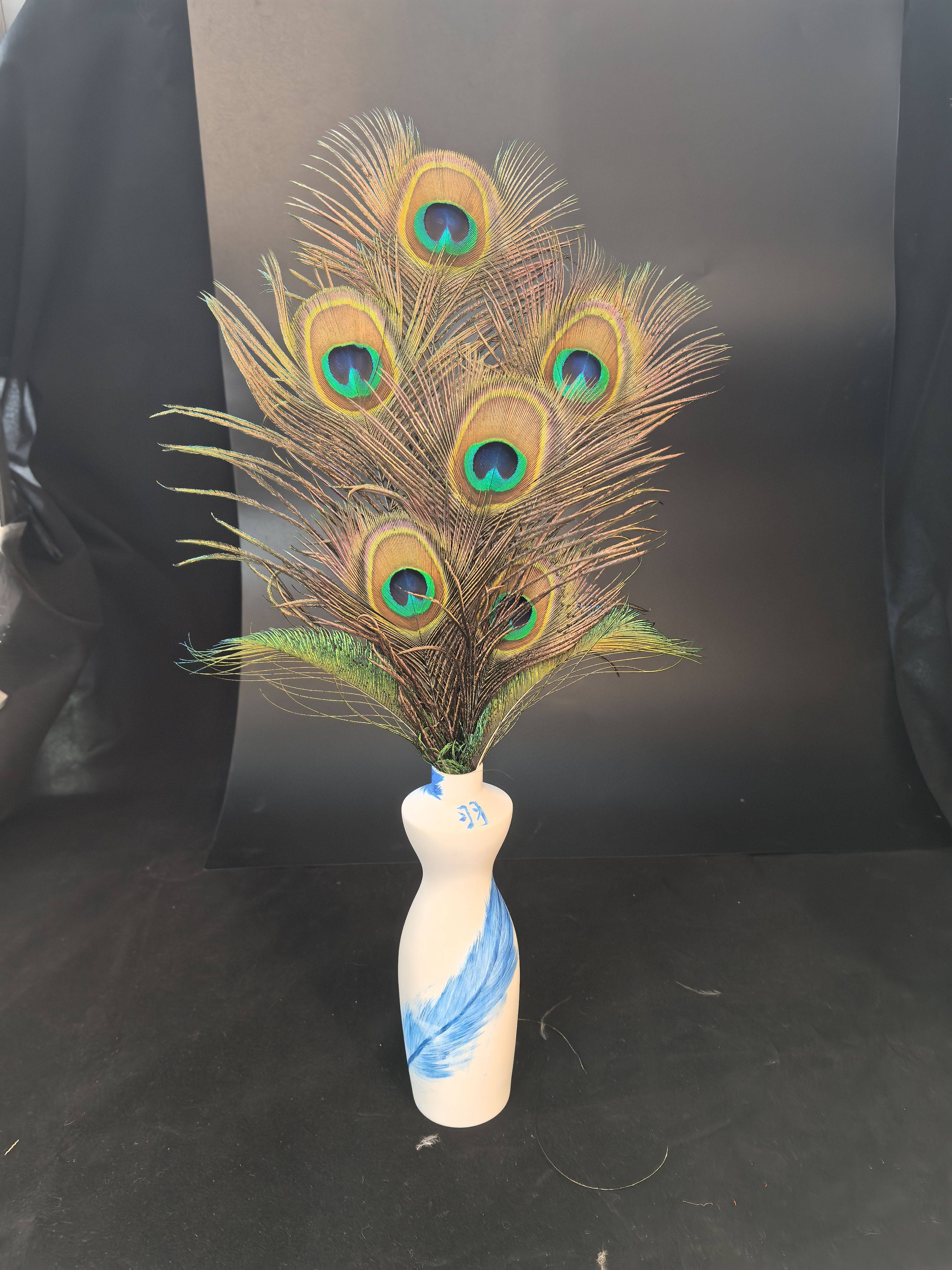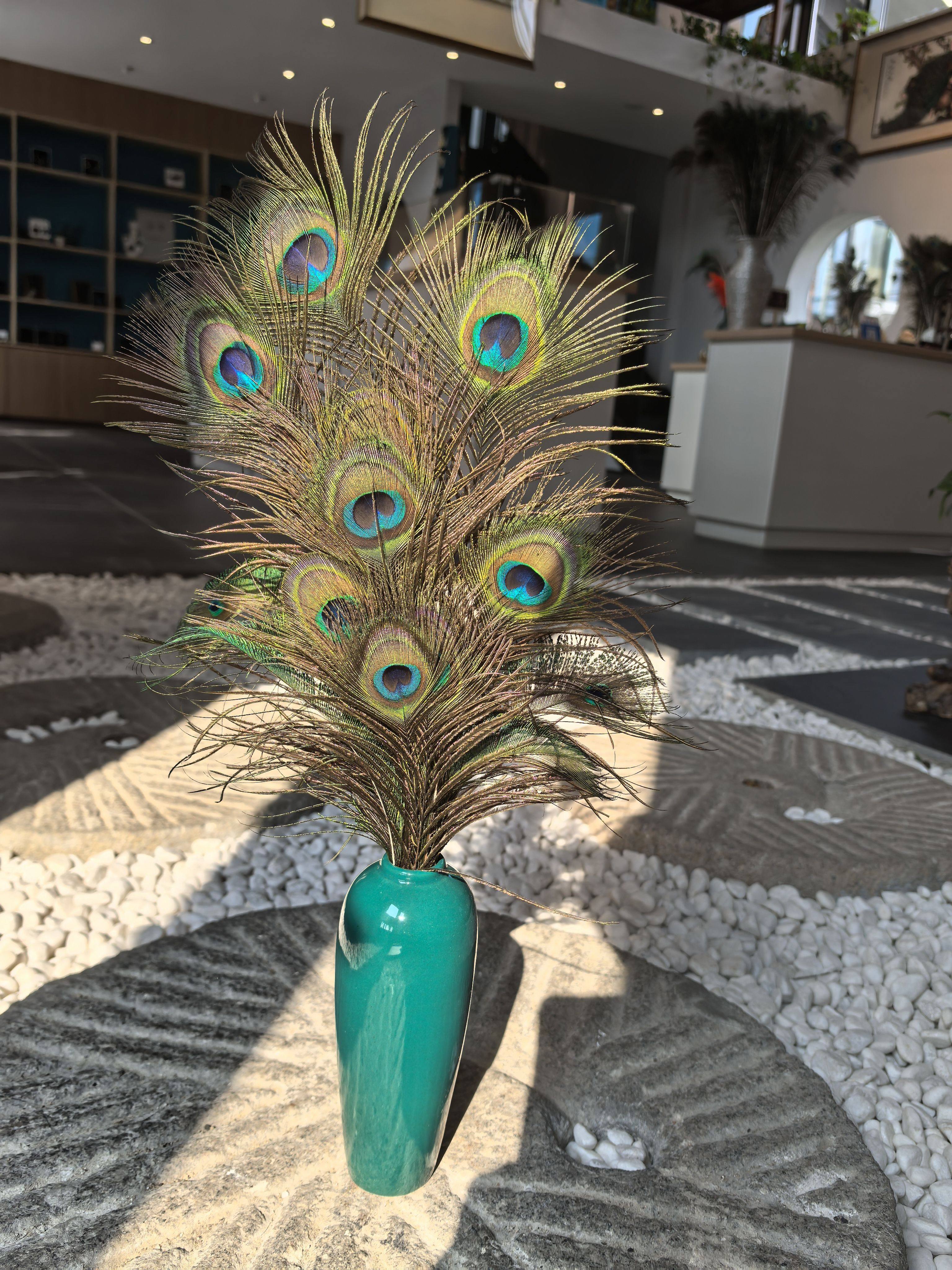 纯天然孔雀羽毛真品高档中式家居客厅装饰摆件饰品真毛花瓶孔雀翎