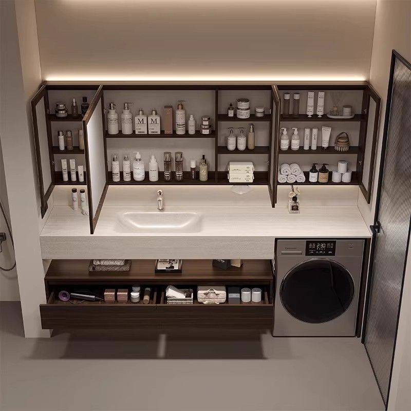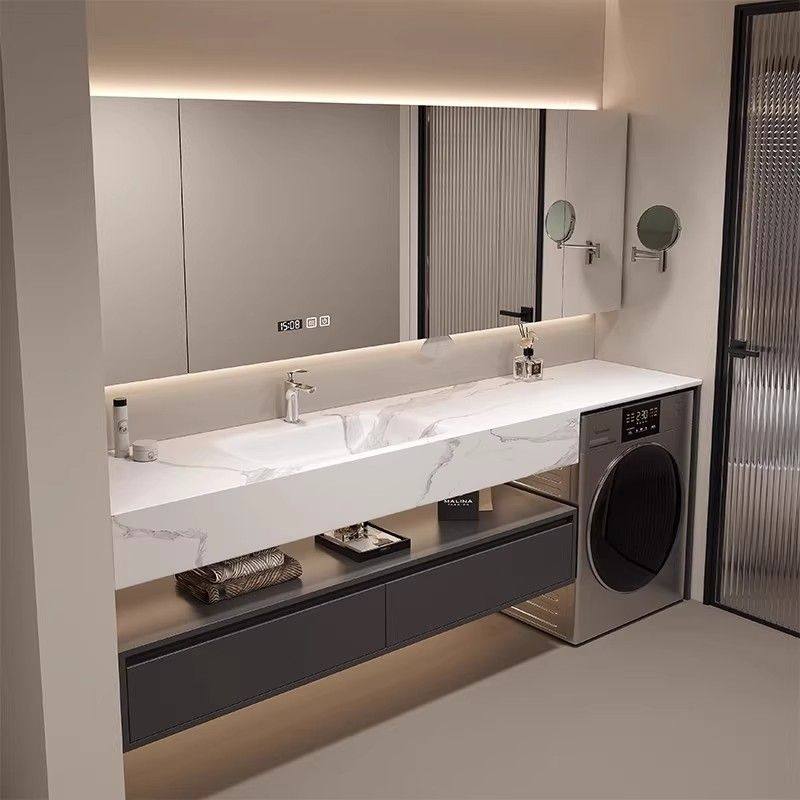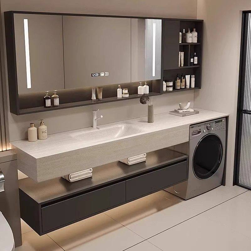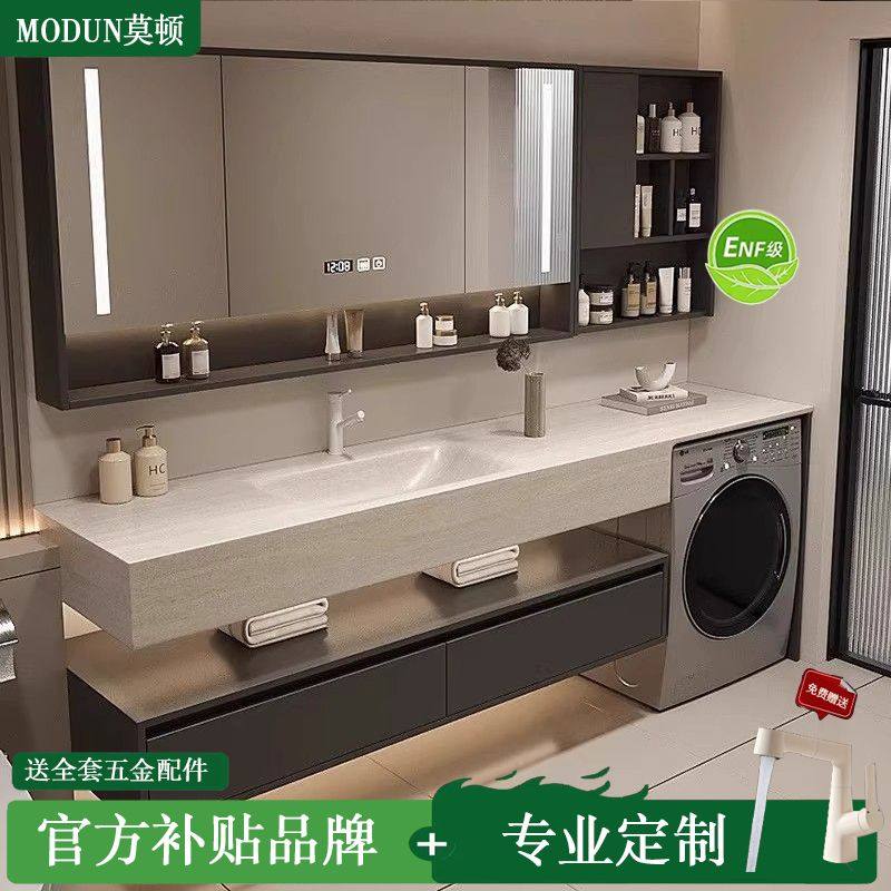 莫顿现代中古风岩板热弯一体盆洗衣机浴室柜组合卫生间岩板无缝盆