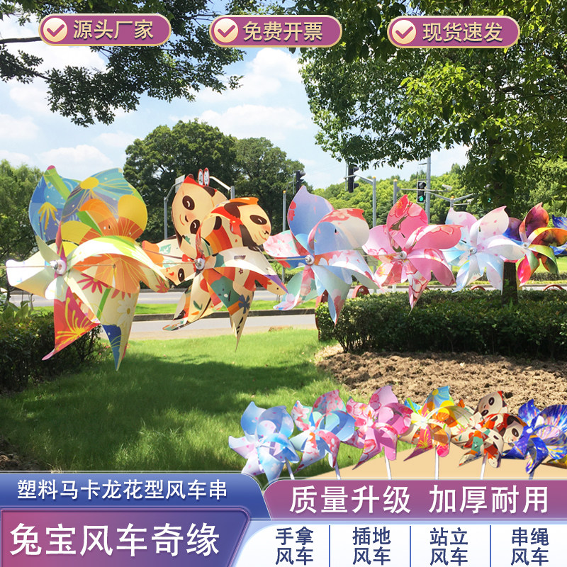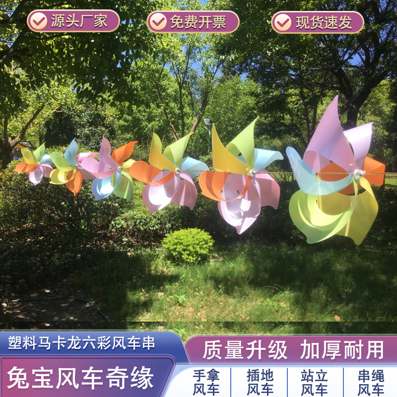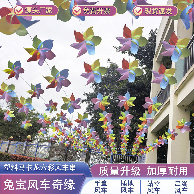 马卡龙双色塑料风车串 学校幼儿园悬挂景区公园装饰 路引婚礼风车