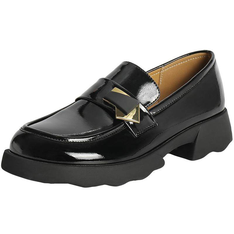 百丽女鞋子乐福鞋春季新款英伦深口单鞋黑色小皮鞋乐福鞋B7X1DAA5