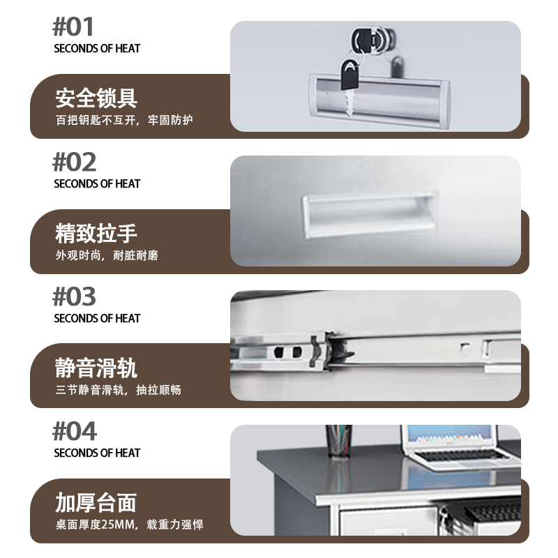 304不锈钢办公桌电脑桌带抽屉桌子医疗实验台工厂车间工作台定制