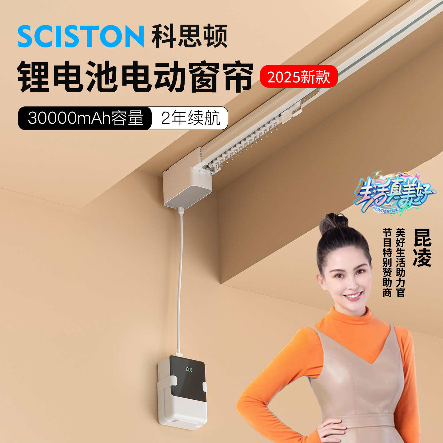科思顿锂电池电动窗帘轨道伴侣神器智能全自动免插电已接入米家AP