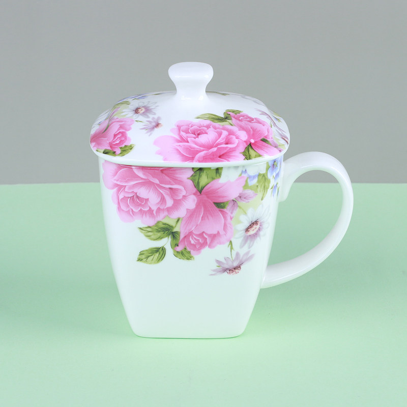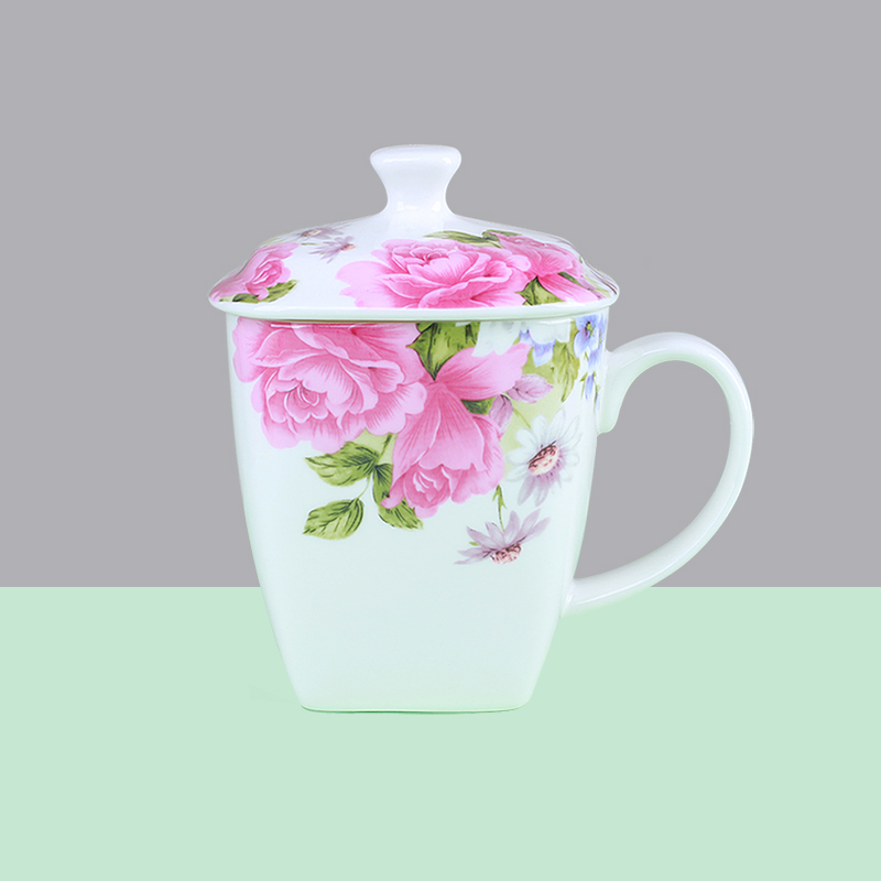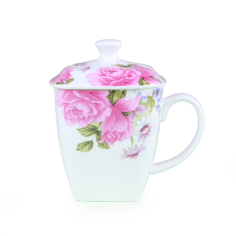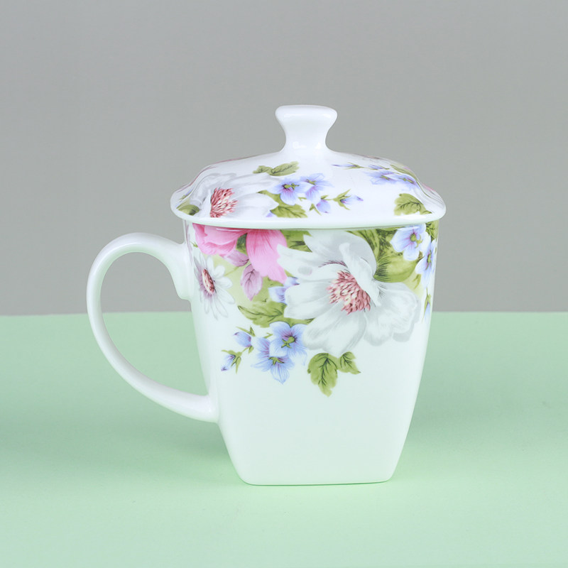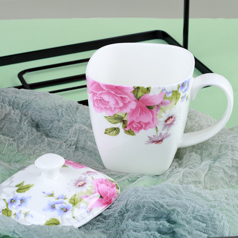 新品骨瓷带盖马克杯方形杯子办公室咖啡杯办公水杯大容量陶瓷茶杯