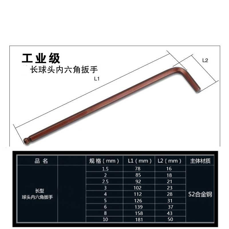 2mm3/4/5/mm球头内六角加硬L型六角匙扳手空调汽修内六方扳手