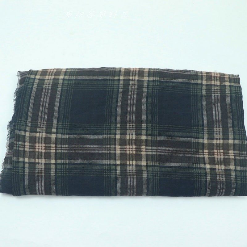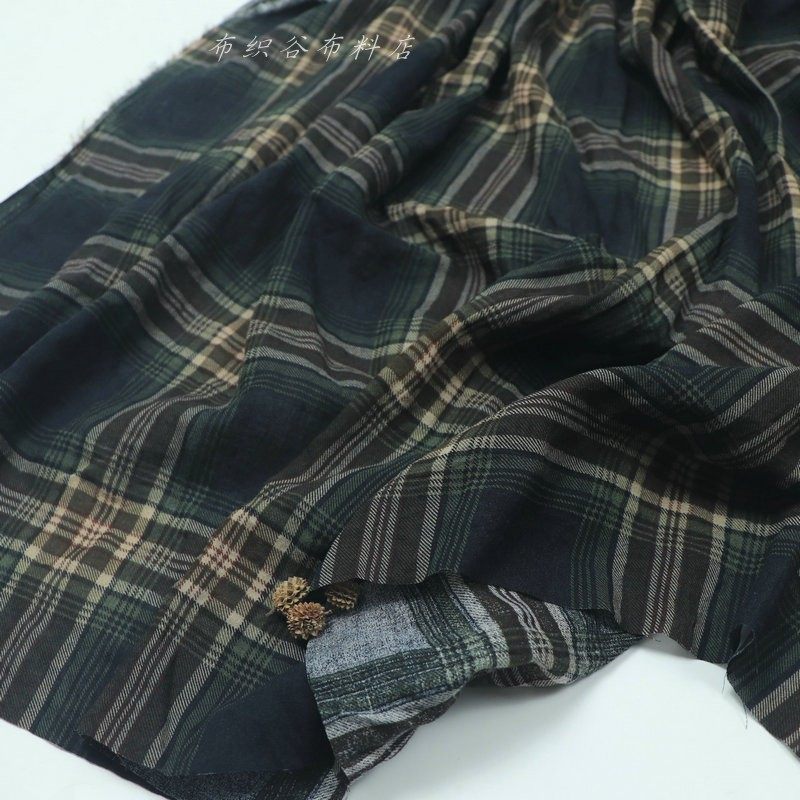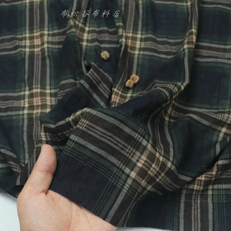 日韩复古深蓝咖绿色织格子薄纯棉布料夏季男女衬衫连衣裙服装面料