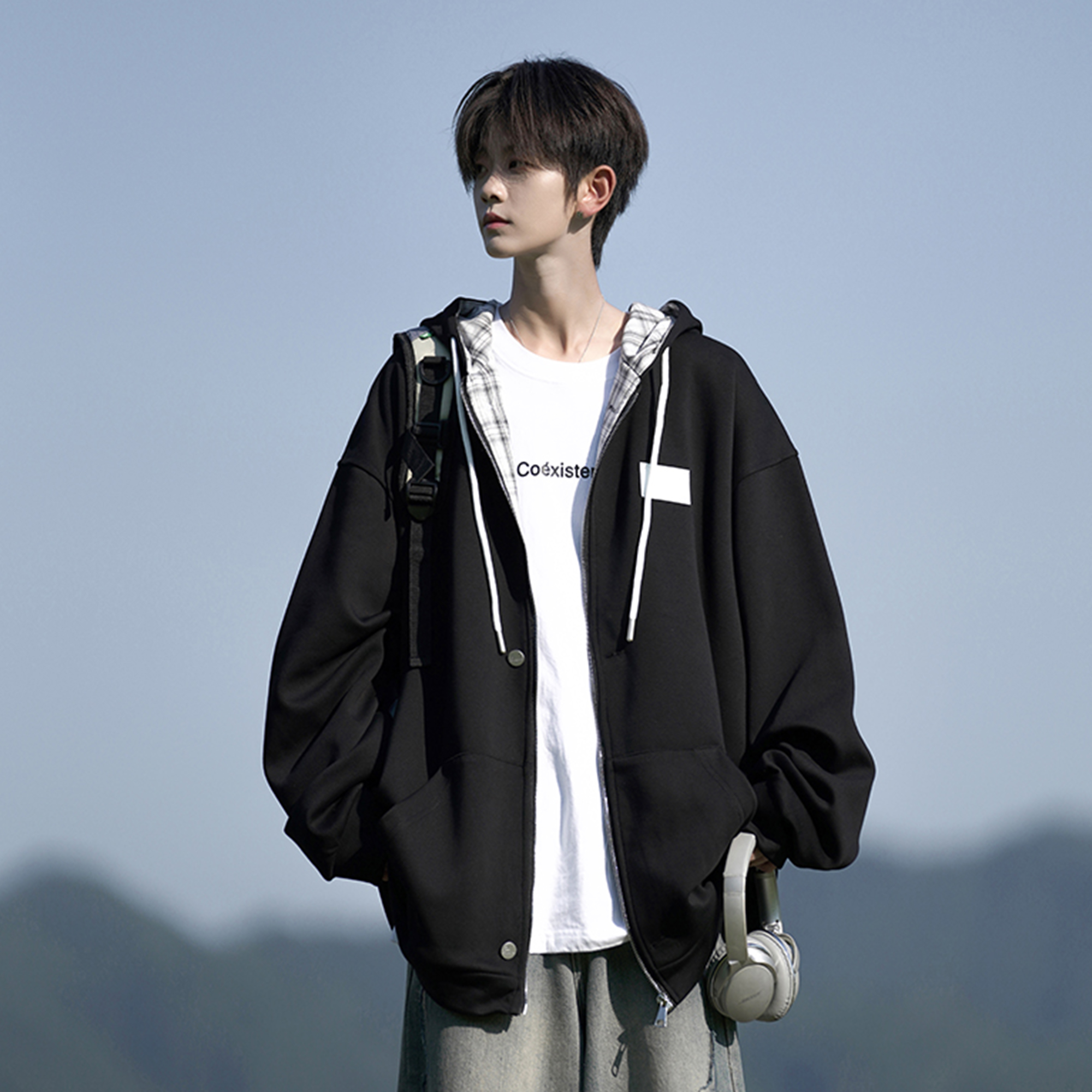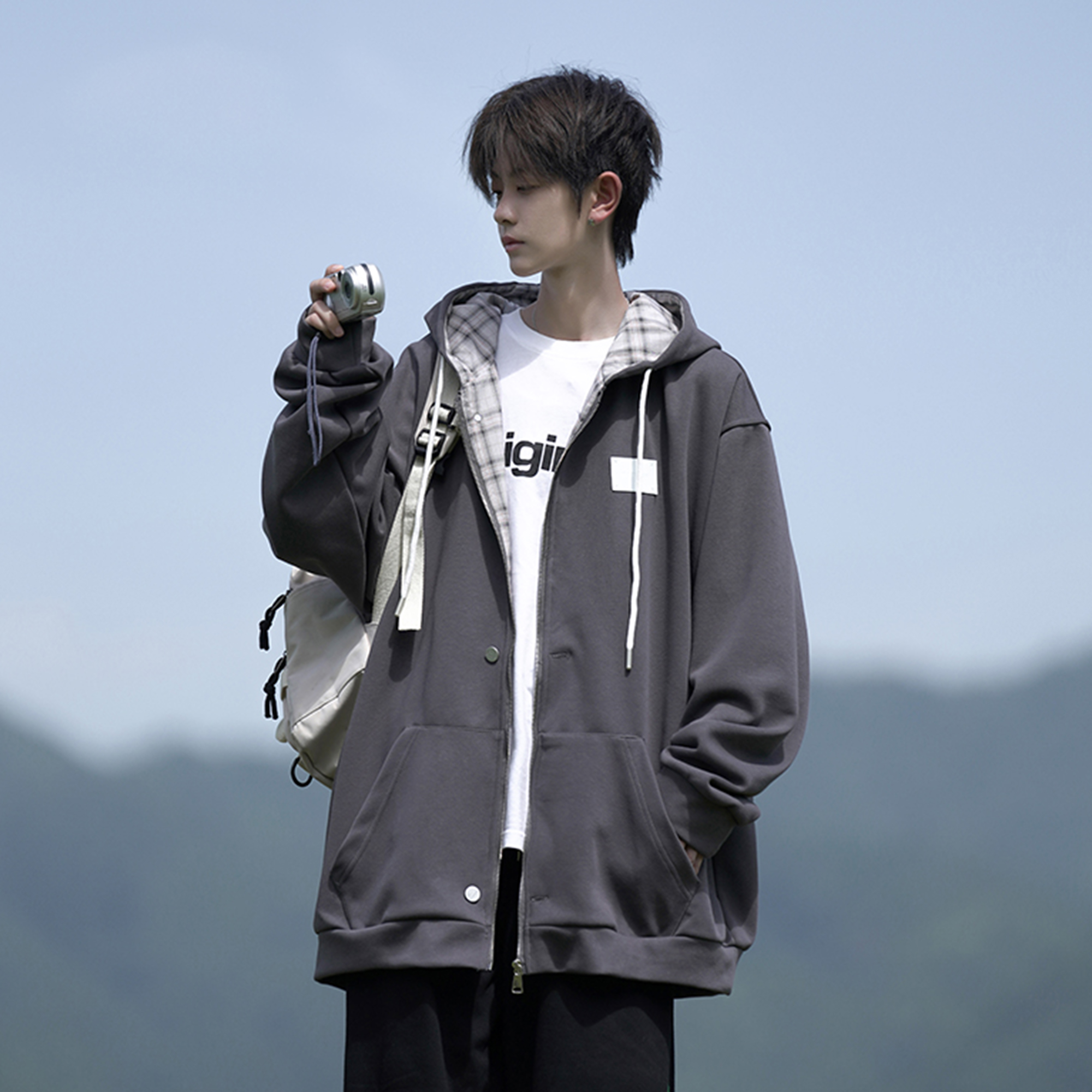 日系重磅开衫卫衣外套男秋季潮流休闲宽松大码冬季加厚男生上衣