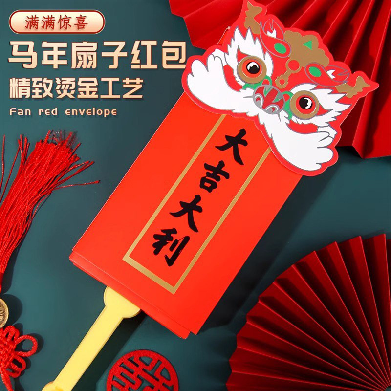 马年扇子红包2026年新款折叠创意国潮舞狮过年新年扇形压岁利是封