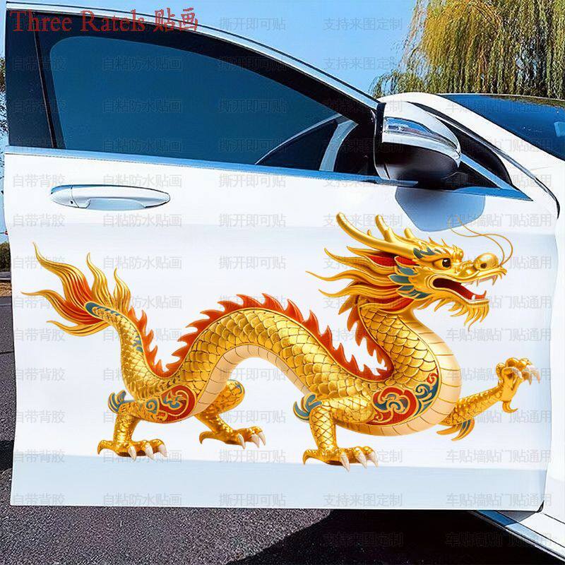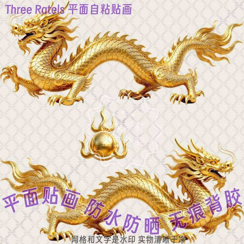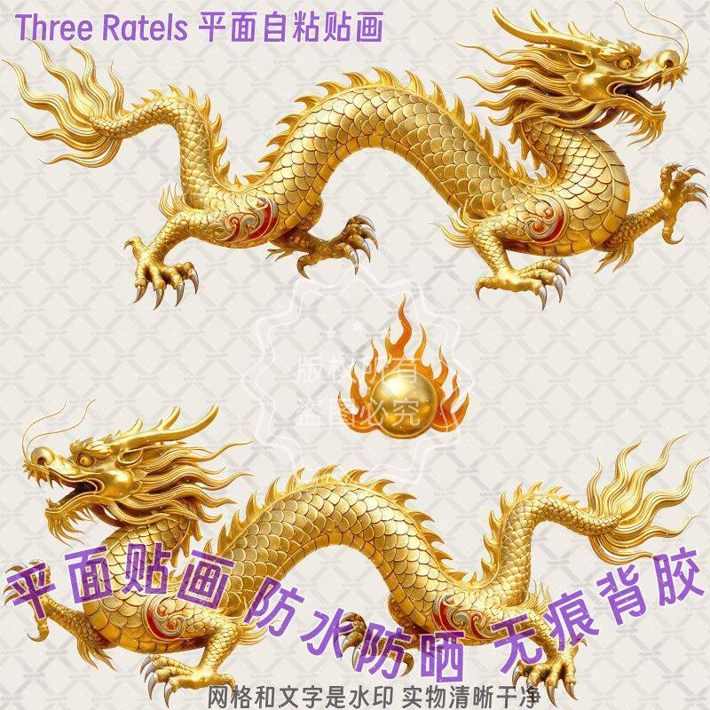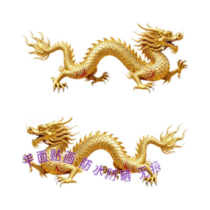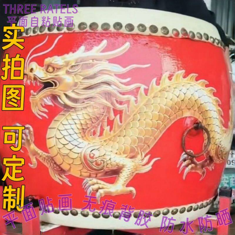 金龙双龙戏珠锣鼓龙鼓贴纸防水车贴门贴房梁家具背景墙上装饰贴画