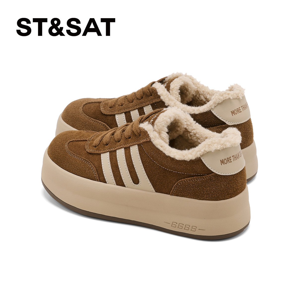 星期六加绒女鞋2025冬季新款厚底板鞋时尚百搭保暖运动休闲德训鞋
