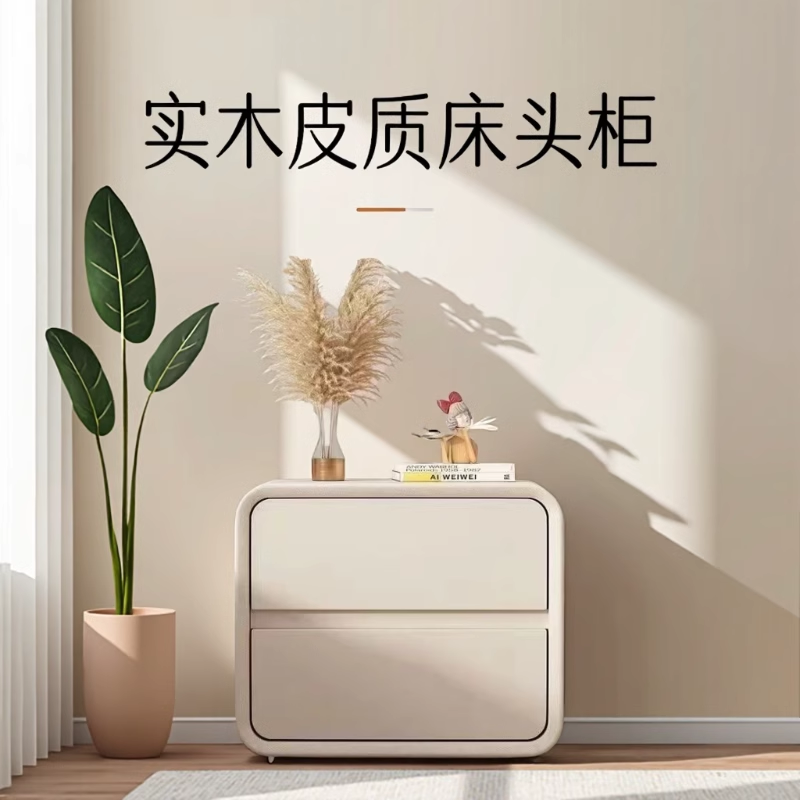整装实木包皮新款卧室床边柜落地迷你圆角收纳柜奶油风简约床头柜