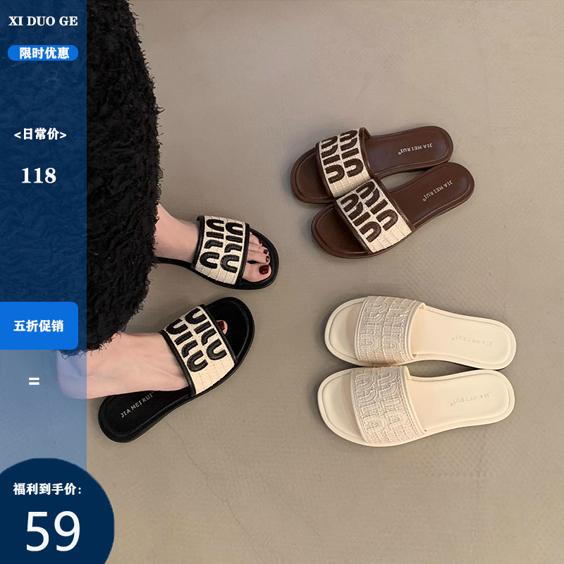 平底小香风一字拖鞋女鞋子2024年新款夏季外穿法式小凉拖沙滩凉鞋