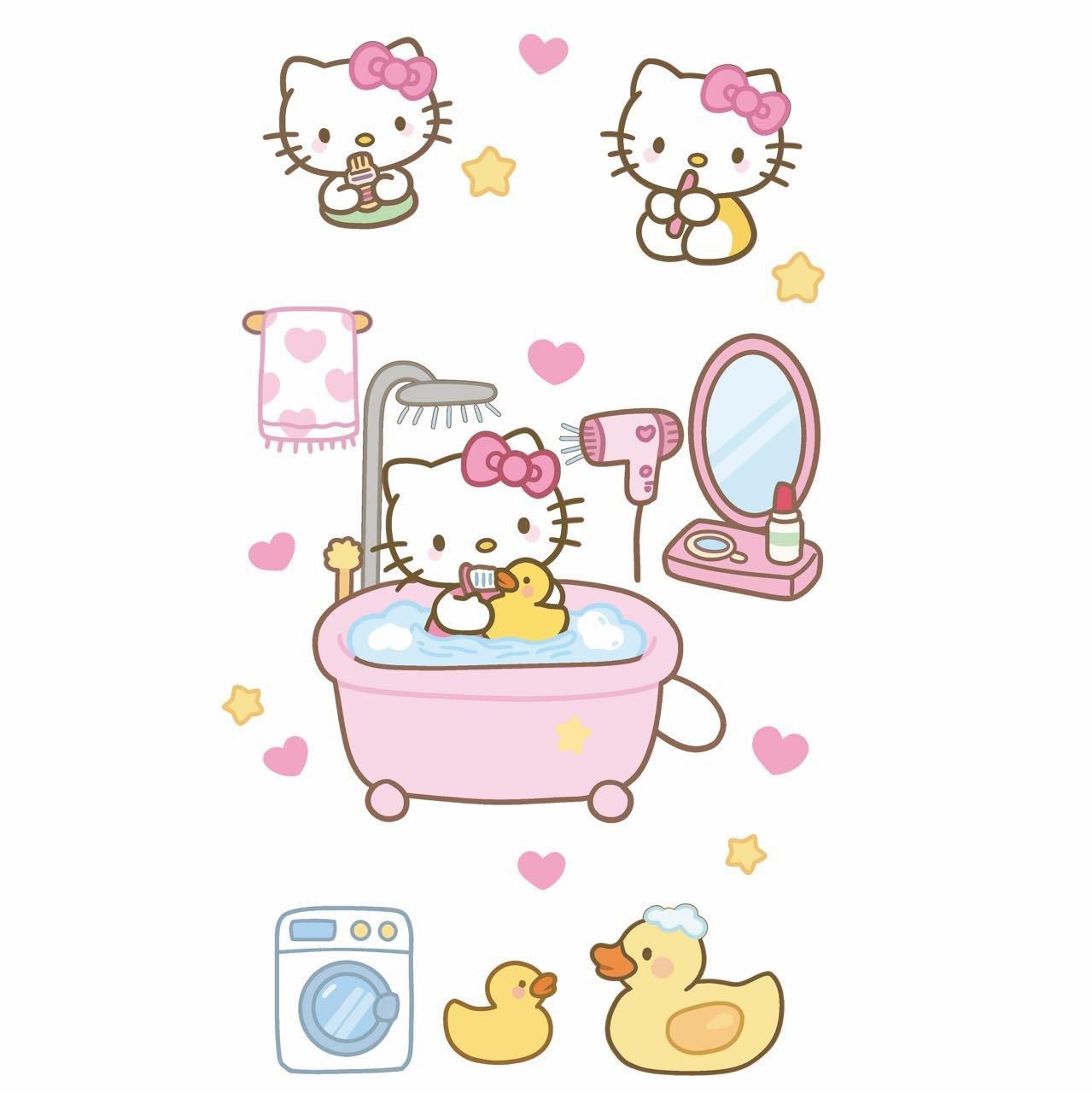 hellokitty浴室贴纸防水防潮装饰贴画高颜值无痕贴膜瓷砖贴静电贴
