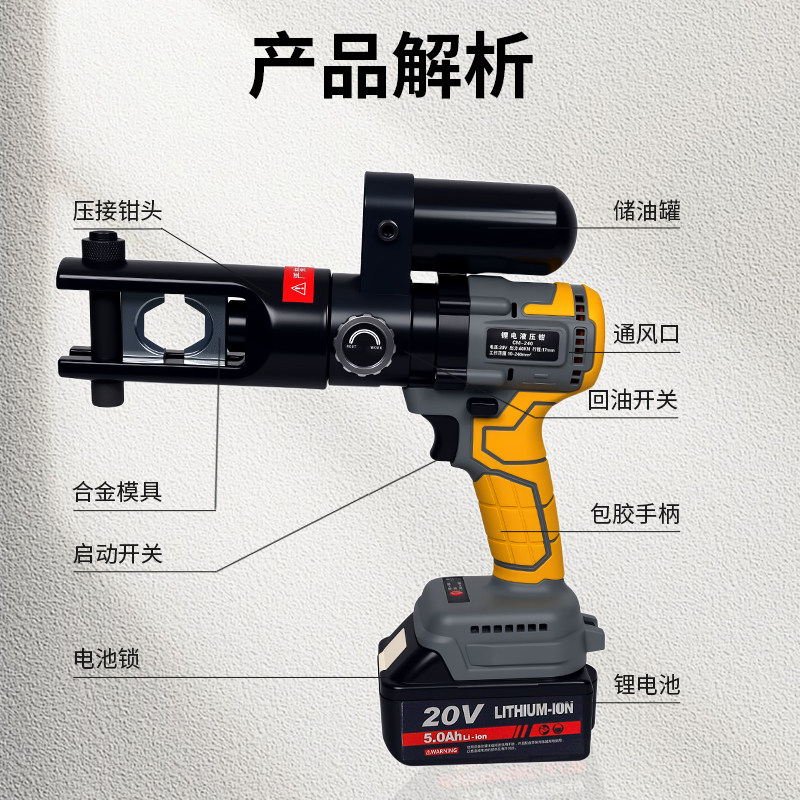 铂泽电动液压钳锂电压线钳充电式线缆钳小型铜鼻端子接线电工专用