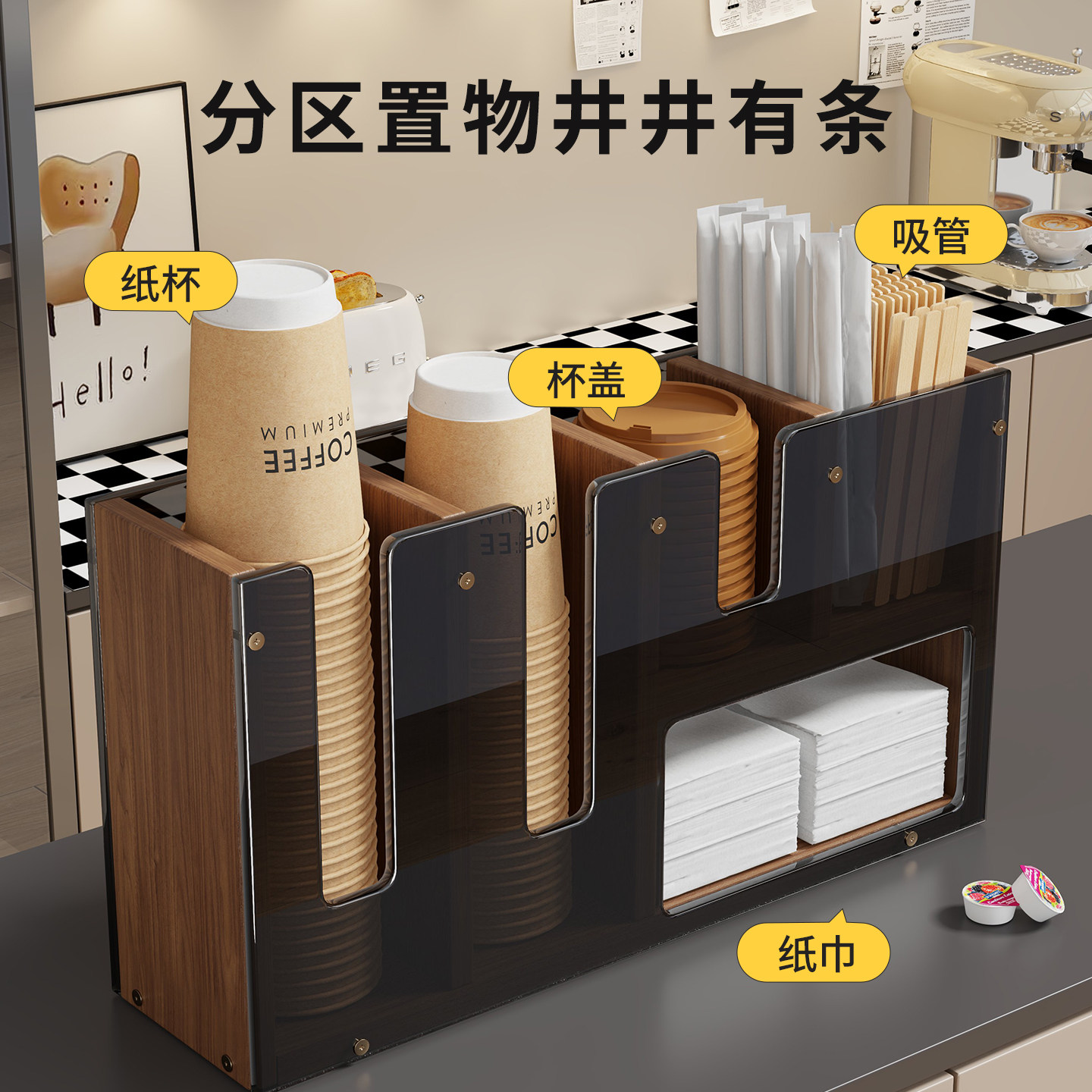 一次性杯子收纳架商用奶茶店纸杯吸管置物架桌面多功能纸巾储物架