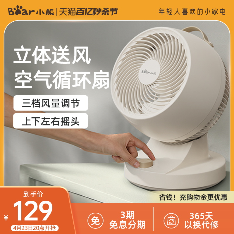 小熊空气循环扇家用床头宿舍厨房电风扇桌面办公室台式大风力轻音