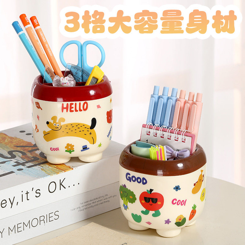 新款】多巴胺桌面收纳盒笔筒学生宿舍整理分格桌面笔筒文具大容量