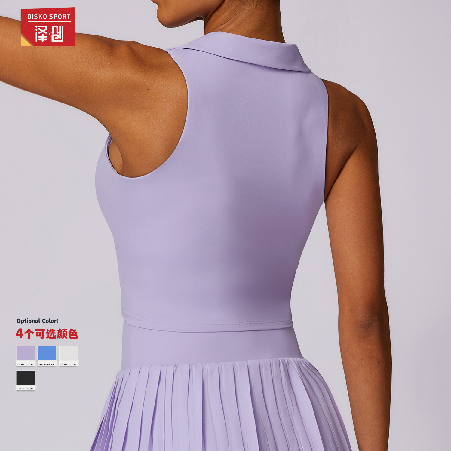 带胸垫POLO翻领紧身内衣休闲网球健身运动背心女衣服瑜伽无袖文胸