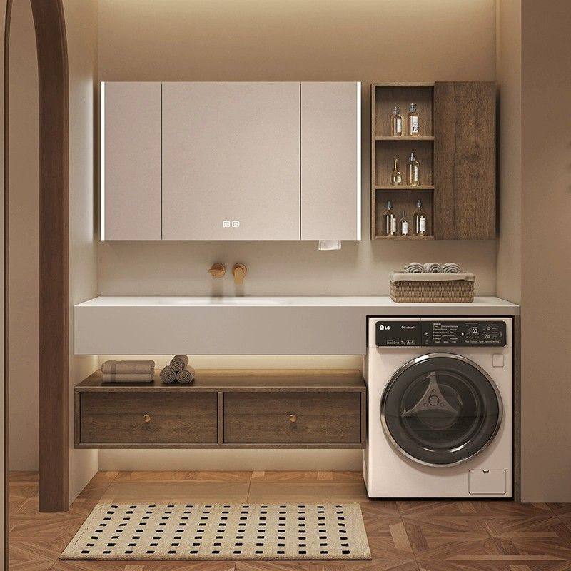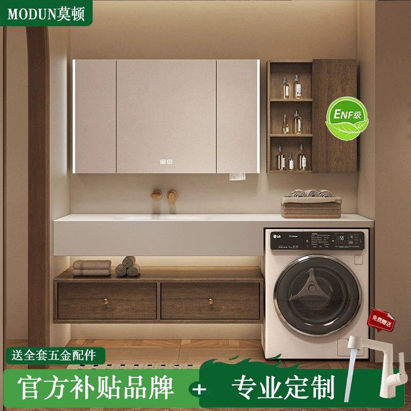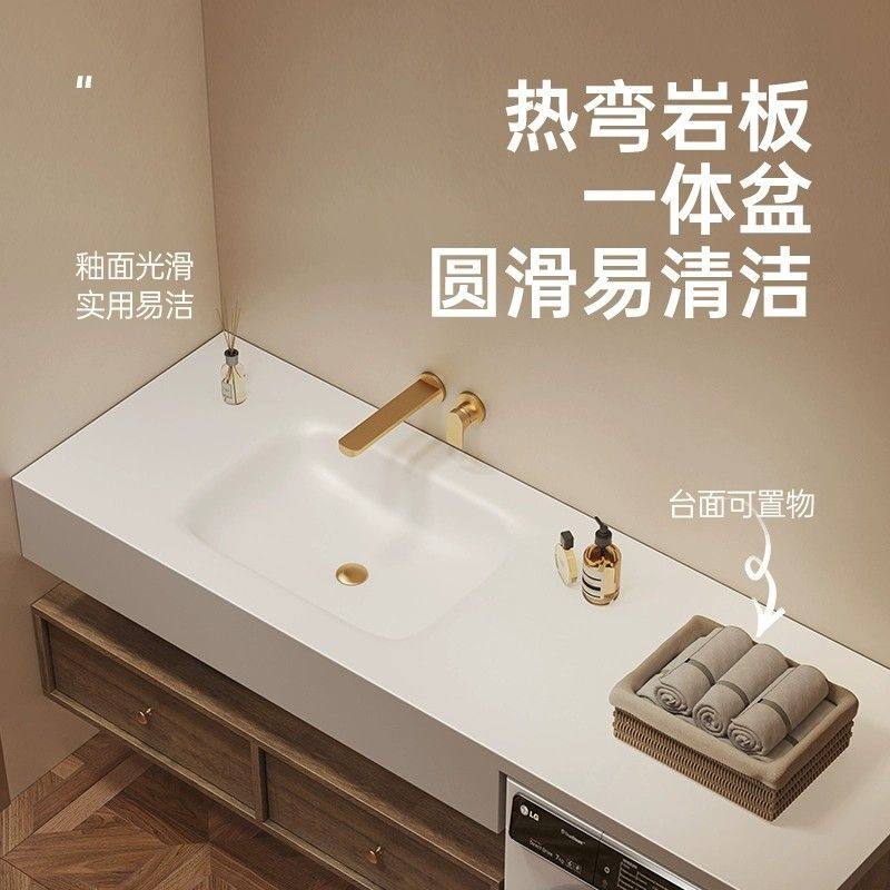 中古风洗衣机柜浴室柜组合岩板热弯一体盆卫生间洗漱台洗手盆