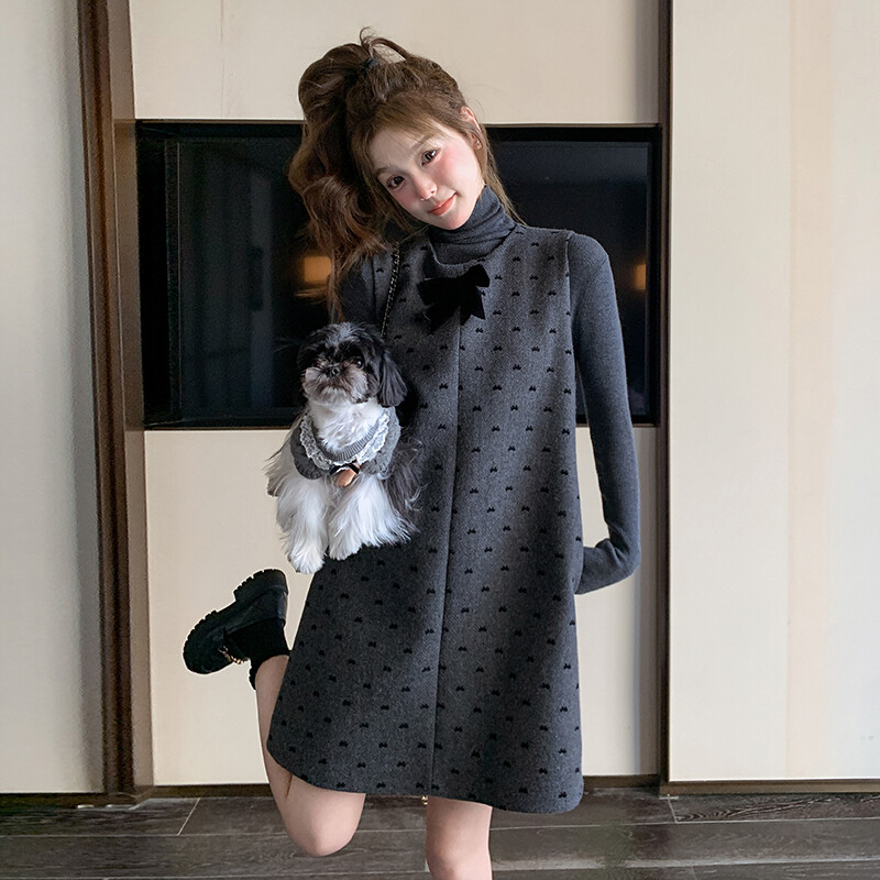 女装/女士精品连衣裙2025年春季其他/other呢料蝴蝶结通勤圆领其