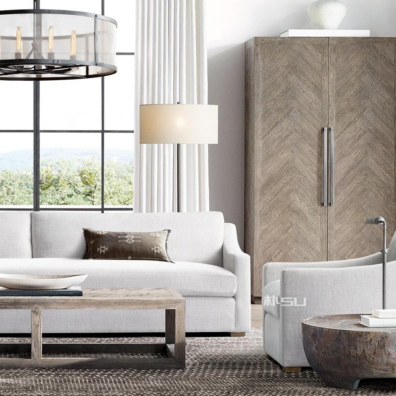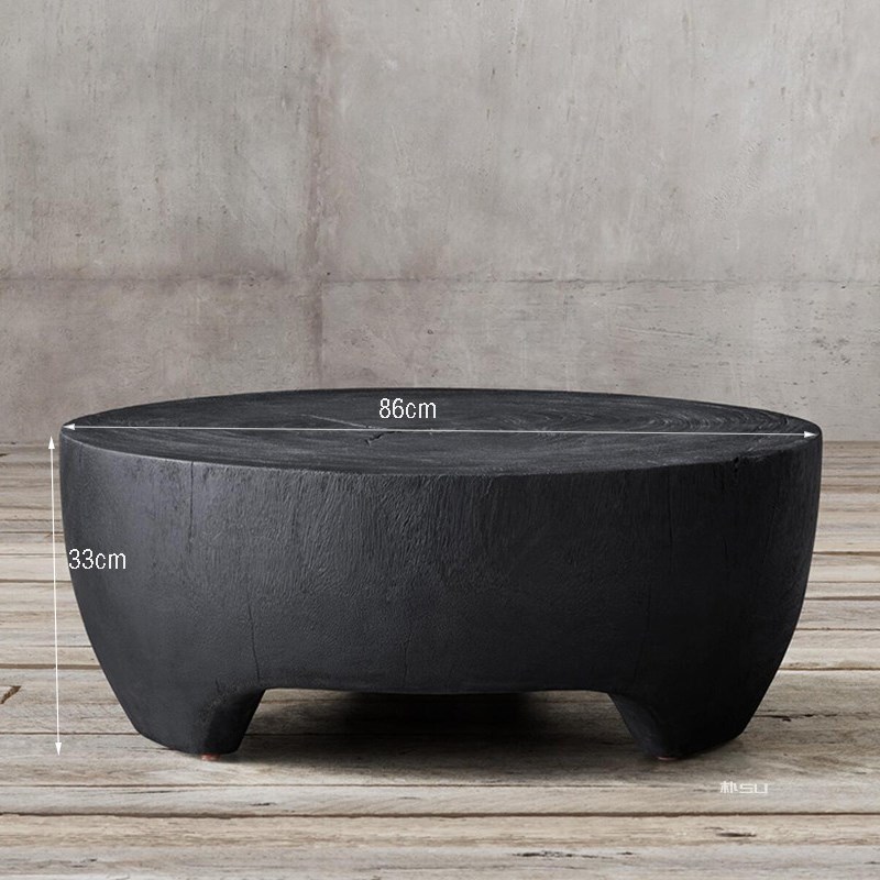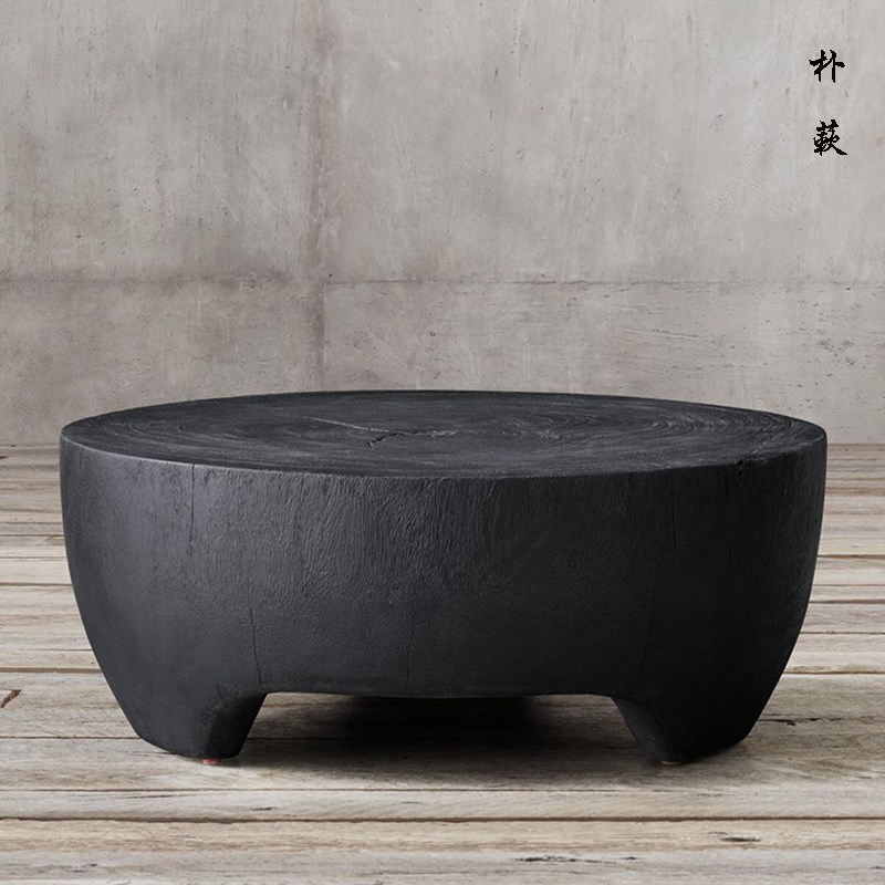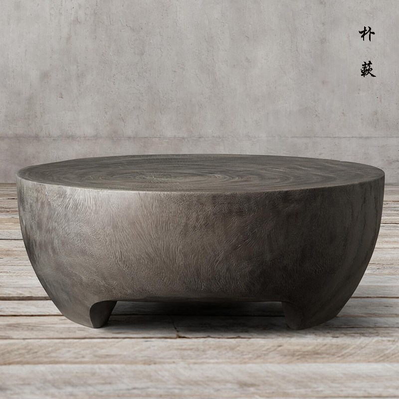 朴簌丨美式乡村矮木圆桌茶几 古朴做旧会客厅商业办公软装家具居