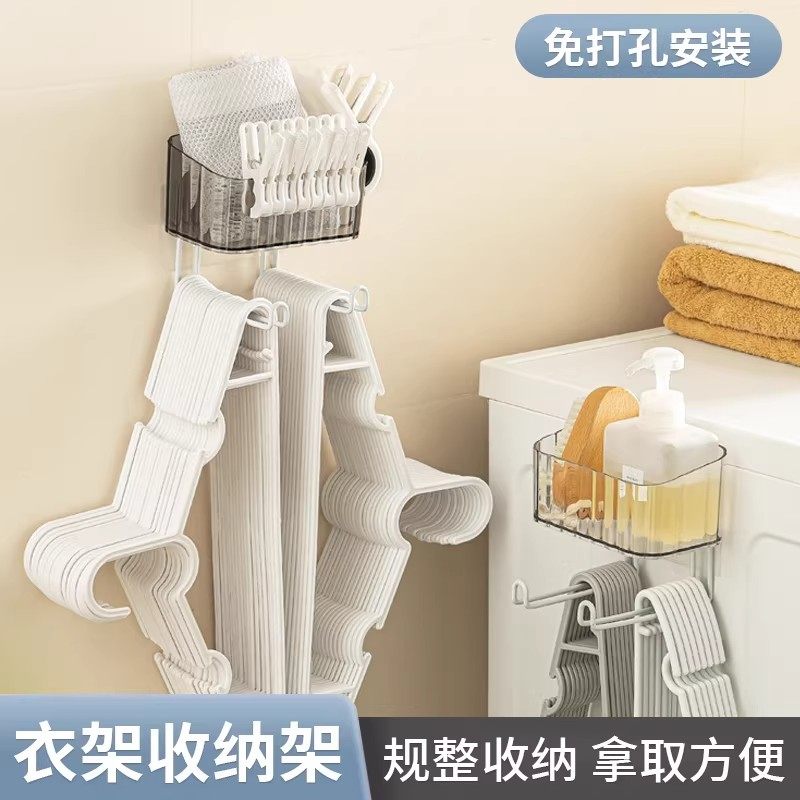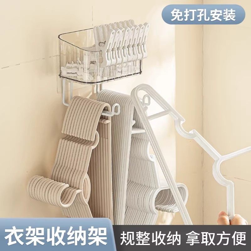 衣架收纳架放架子的神器家用壁挂式免打孔阳台整理筐晾衣夹存放盒