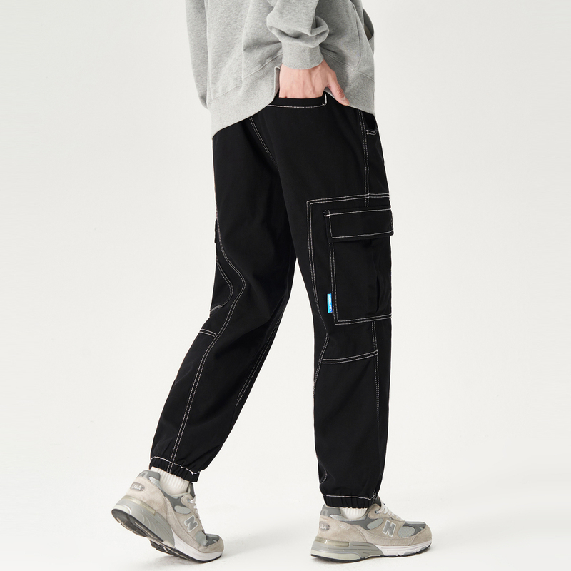 gxgjeans男装 牛仔裤2024年秋季新款黑色明线结构口袋工装长裤潮