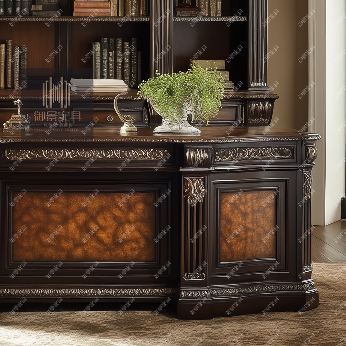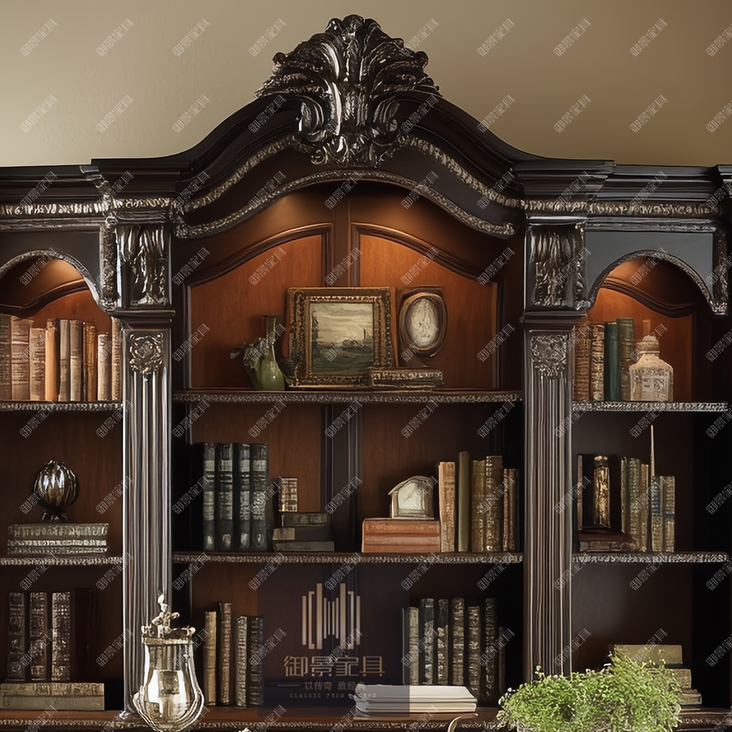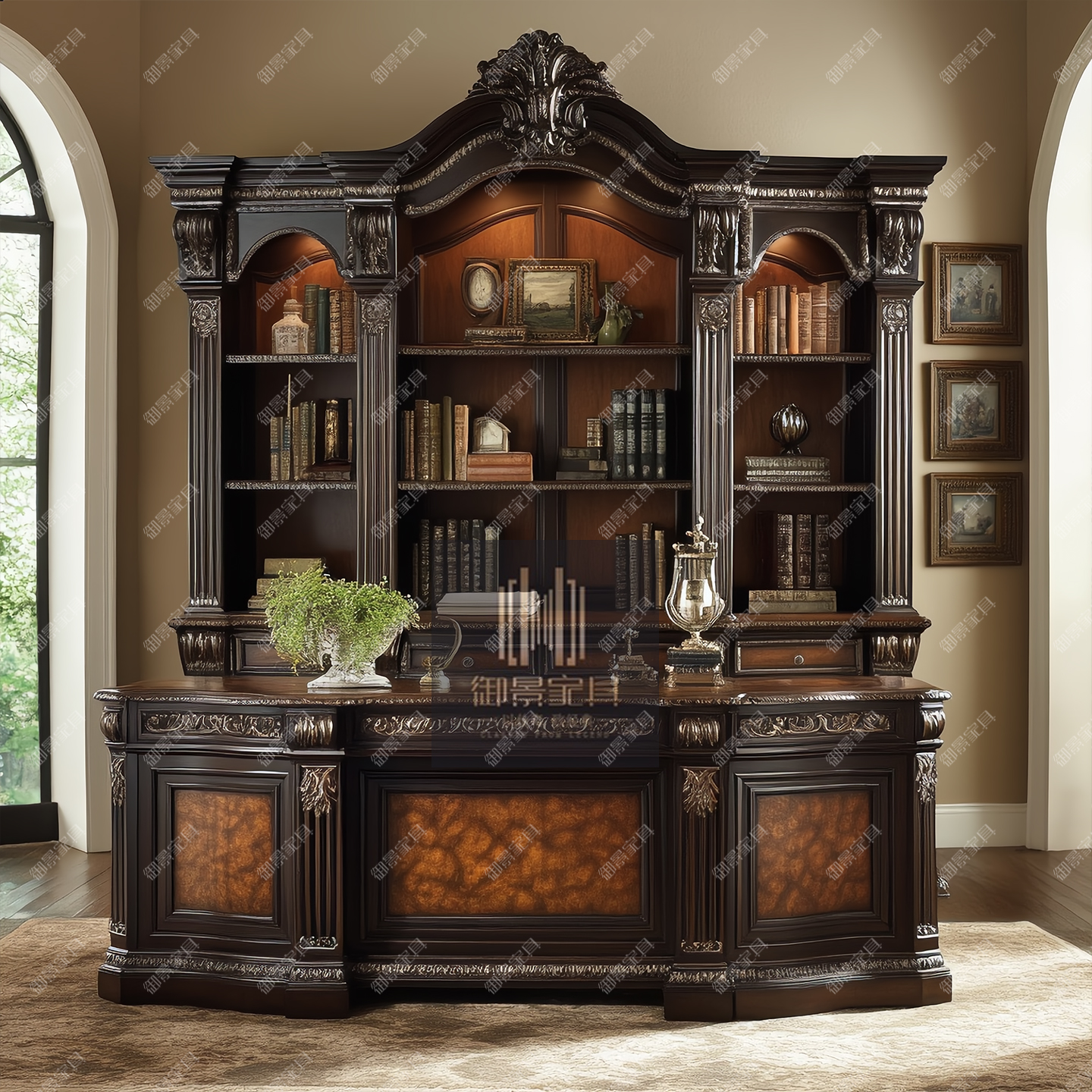 美式实木书柜欧式复古雕花书架客厅储物柜住宅家具家用展示柜定制