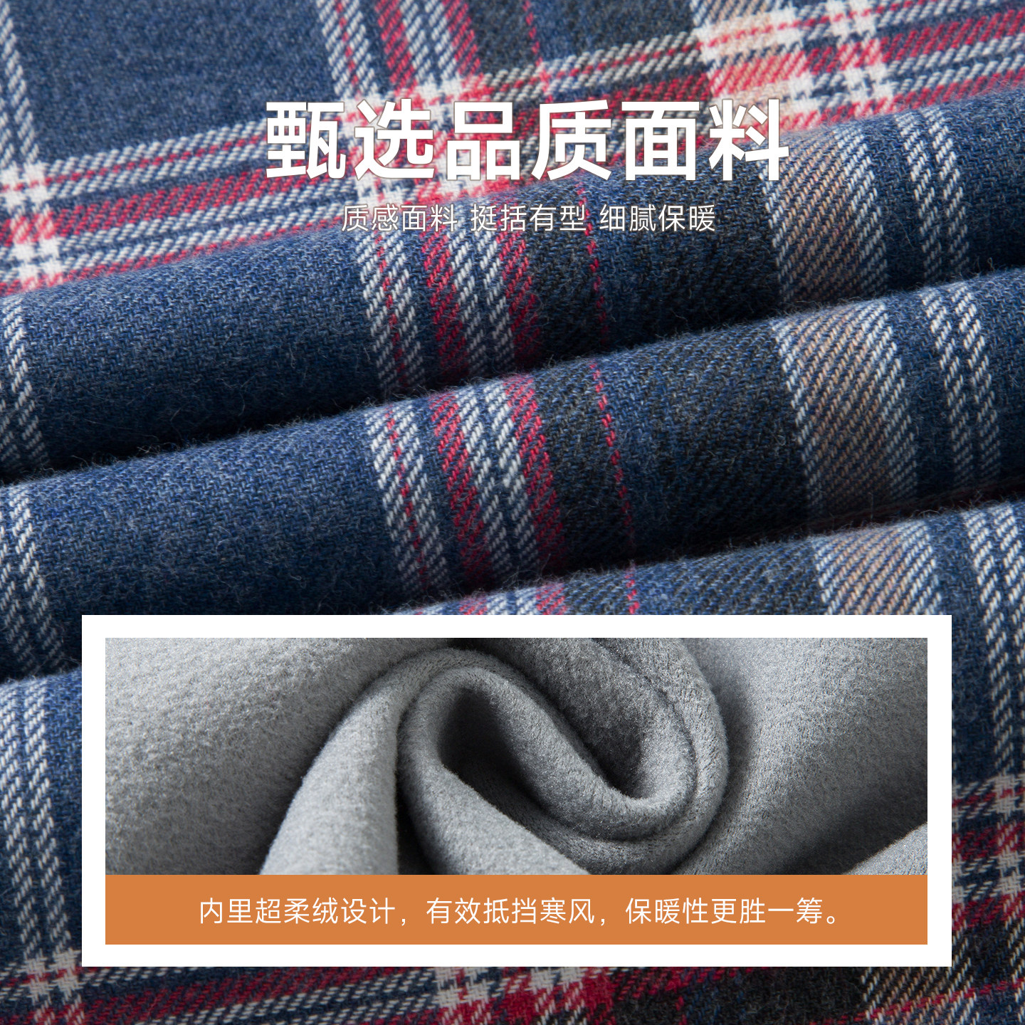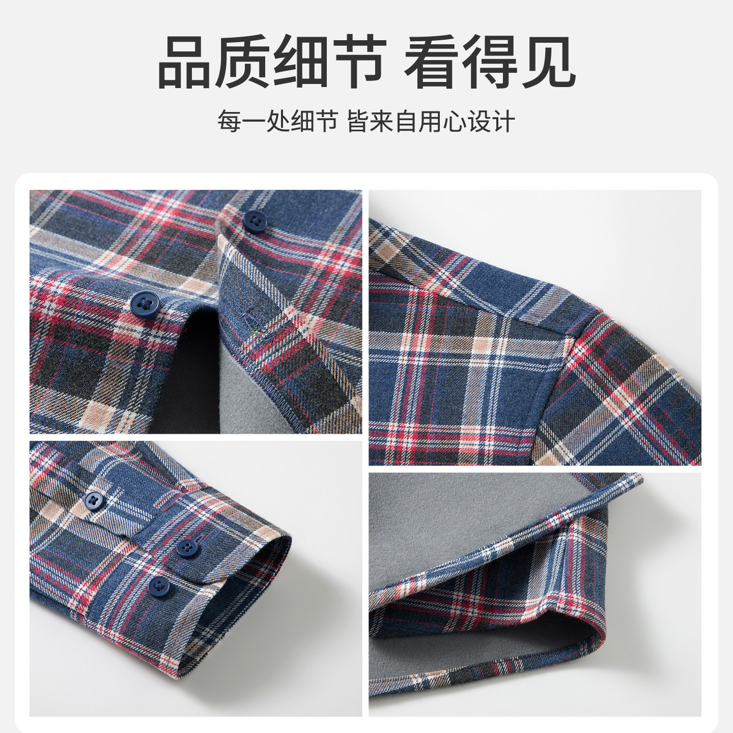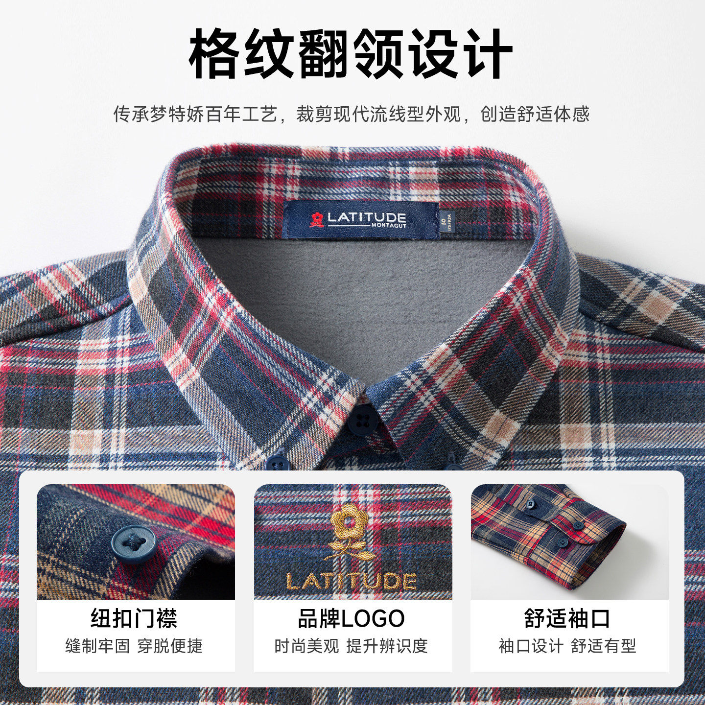100%纯棉-梦特娇男装格纹长袖衬衫加绒加厚冬季中年男士保暖衬衣Z
