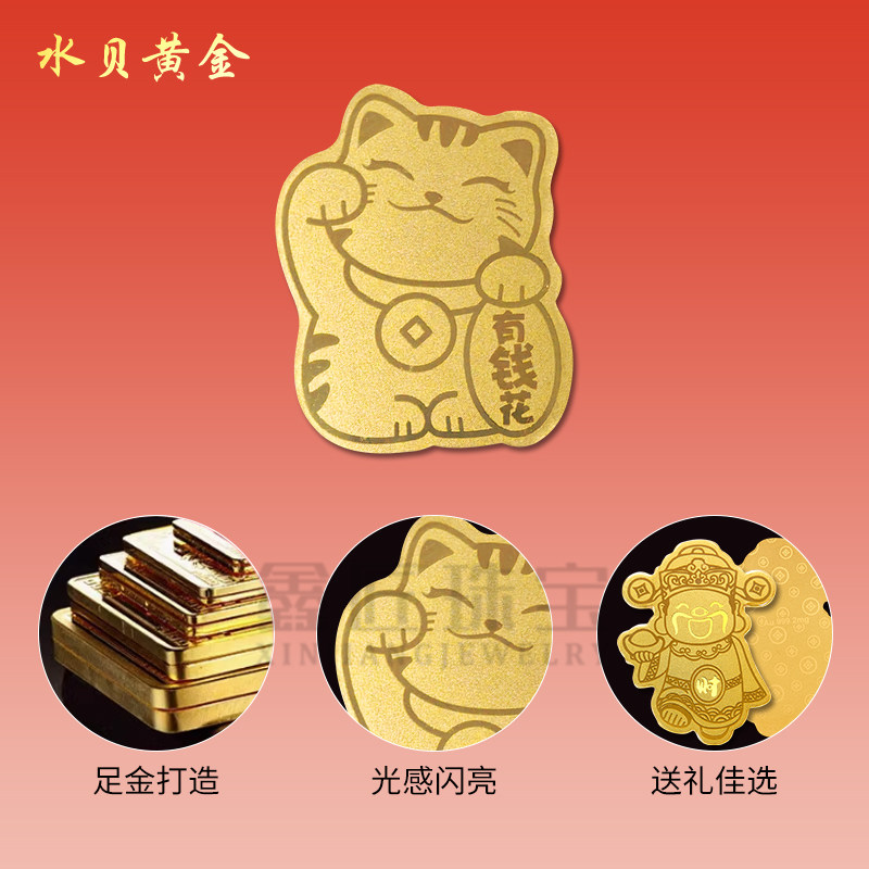 新款黄金手机贴足金999金片贴公主请发财财库手机后背贴生日礼物