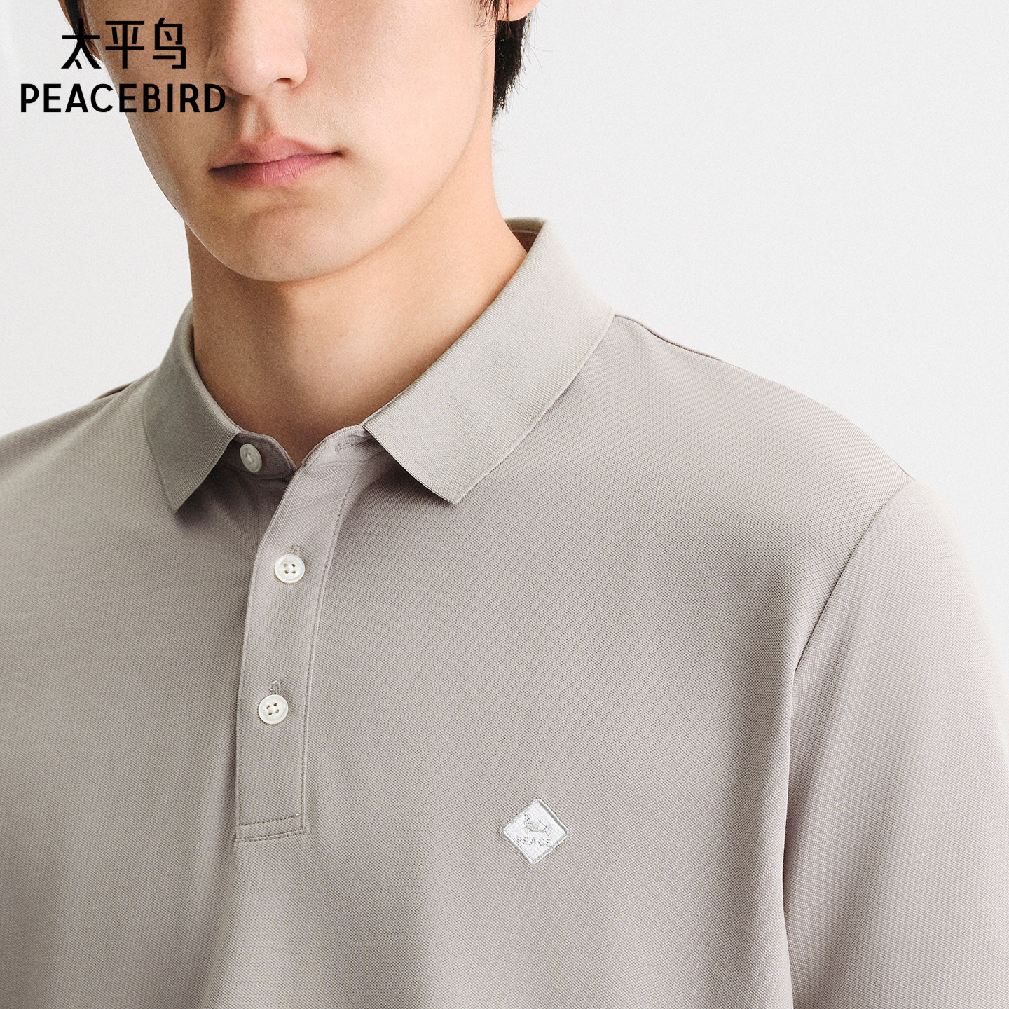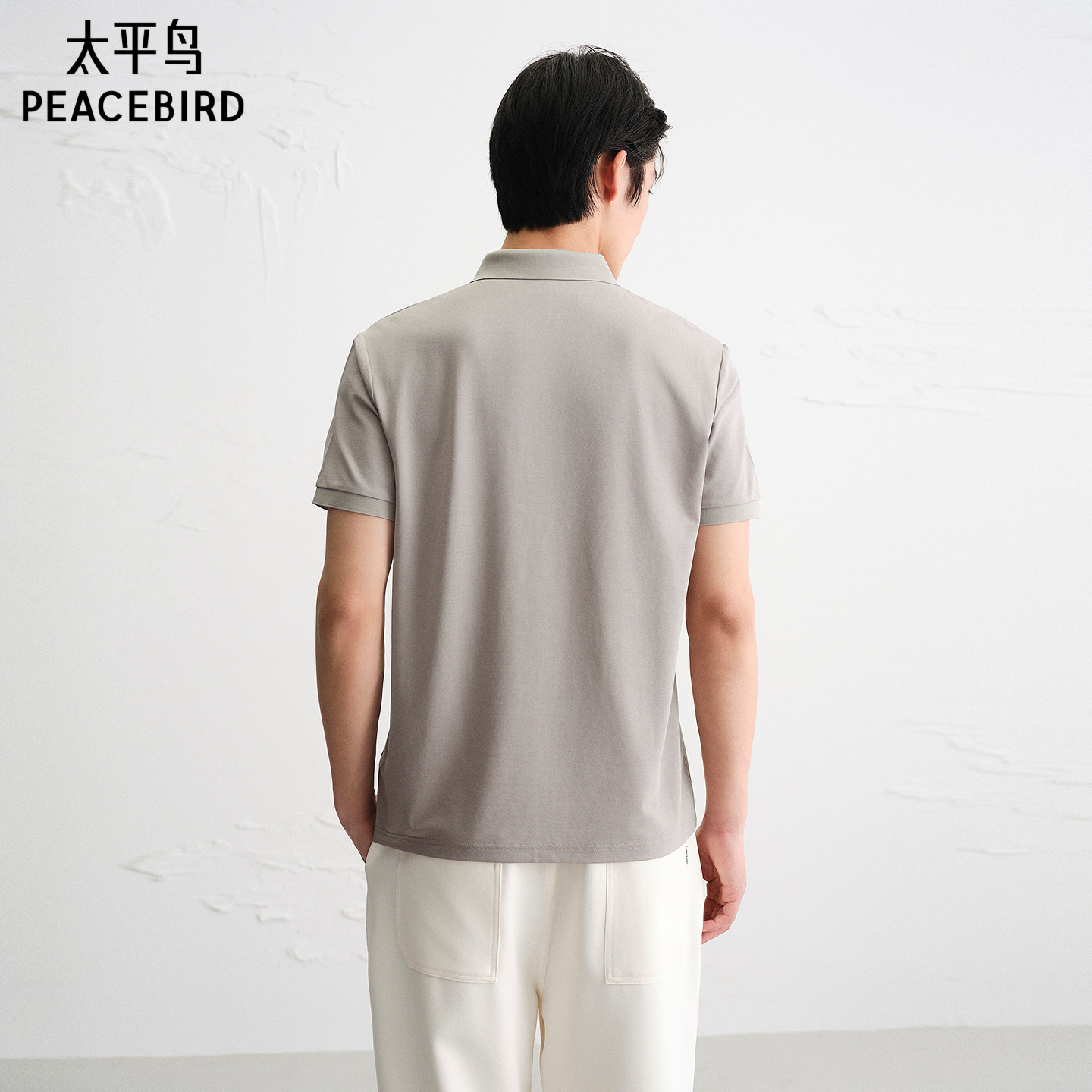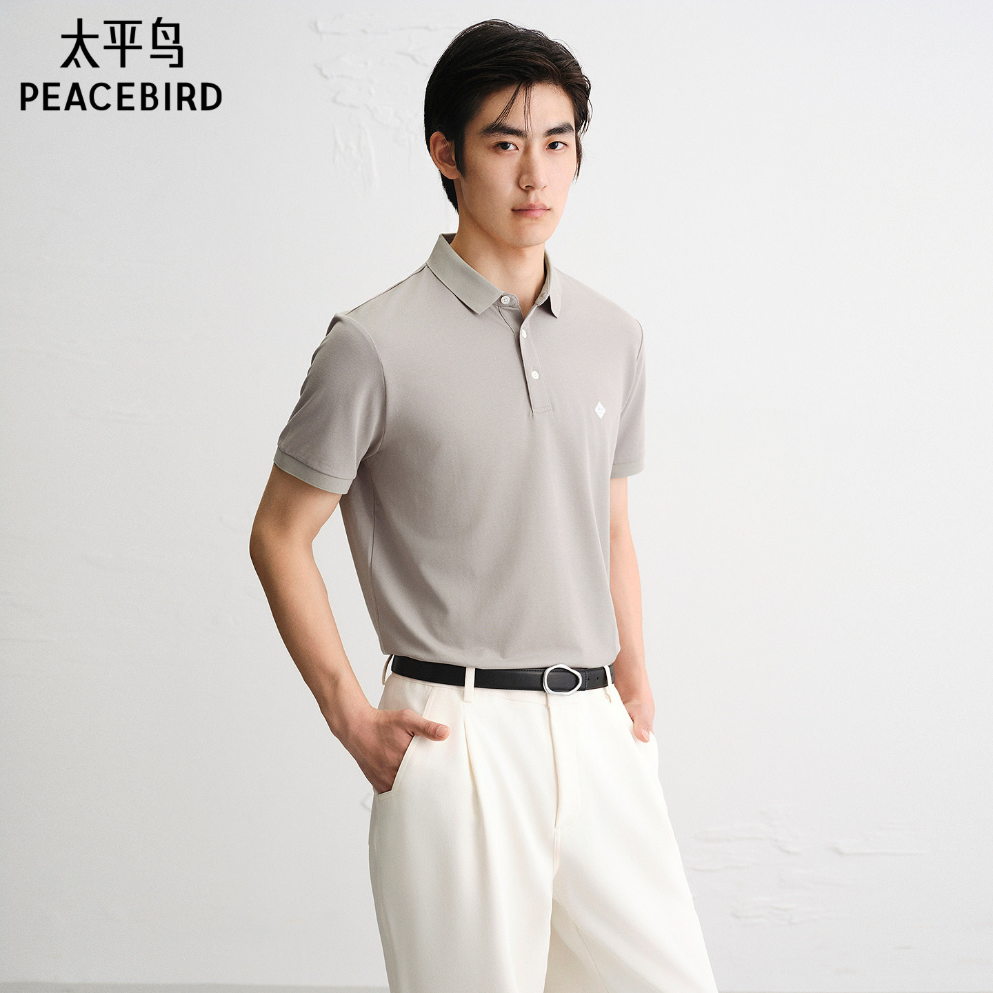 太平鸟男装 polo衫夏季桑蚕丝刺绣翻领短袖t恤
