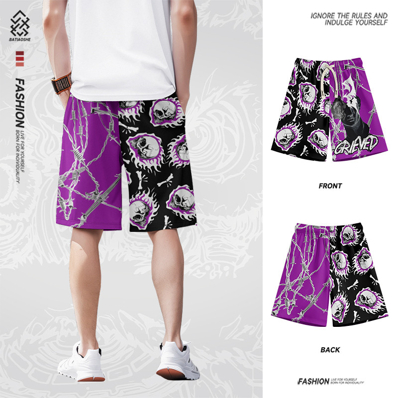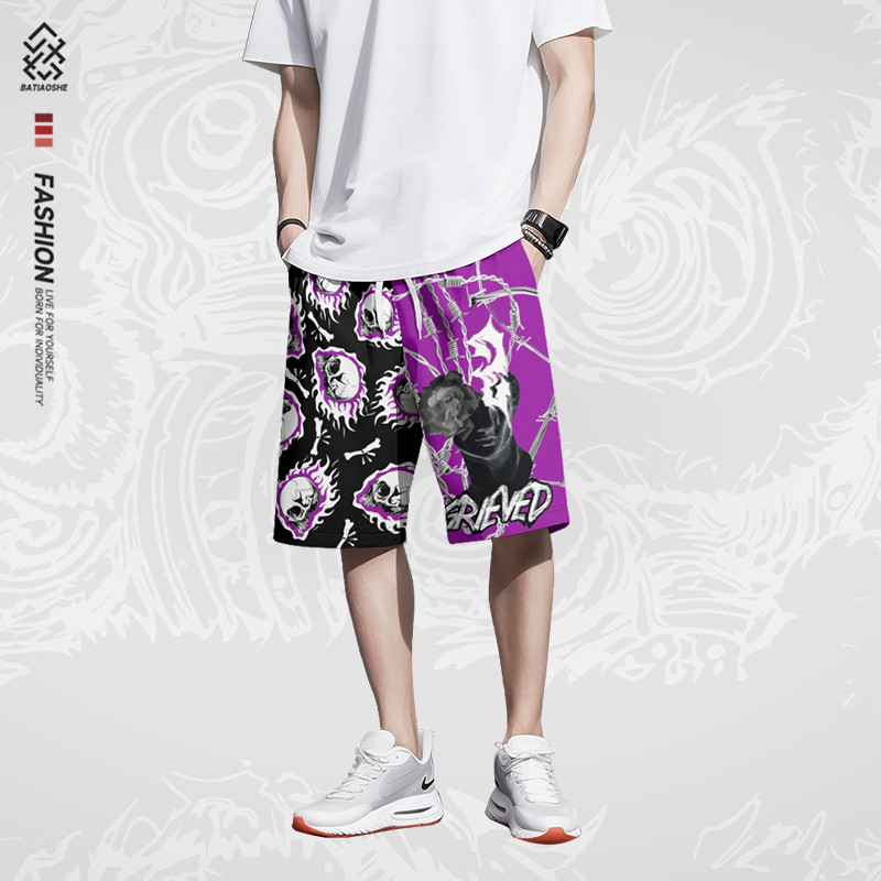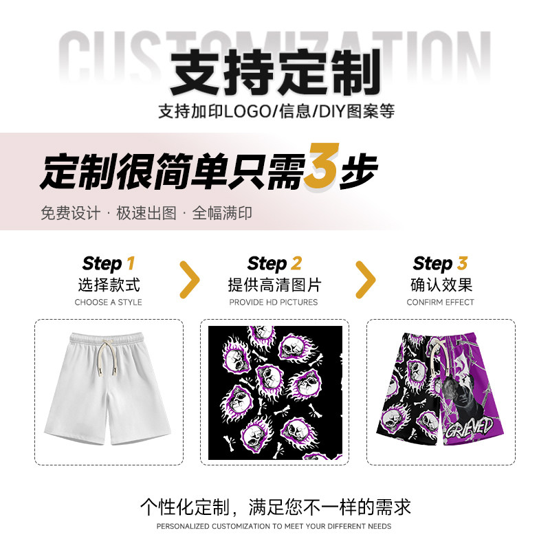夏季新款美式潮流休闲短裤男士宽松速干沙滩裤直筒运动五分裤子男