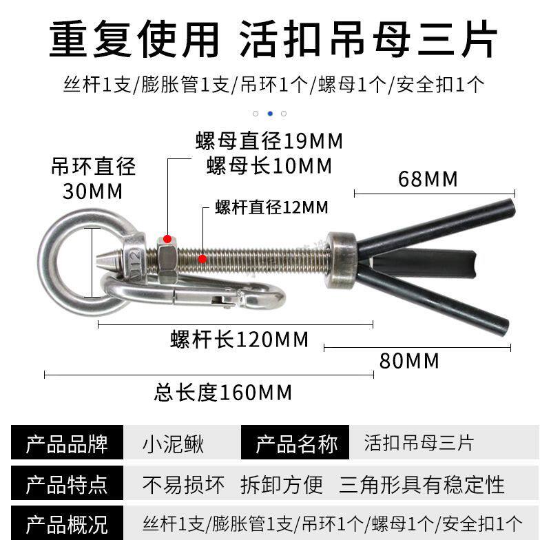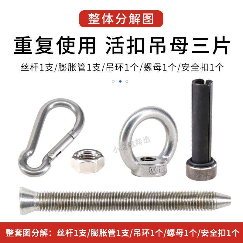小泥鳅不锈钢杆活扣吊母吊环三片可拆卸膨胀螺丝螺栓可重复使用