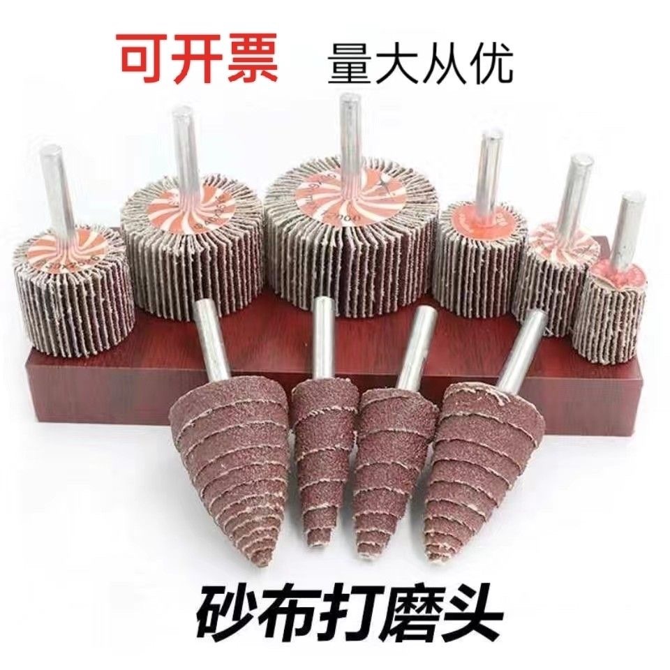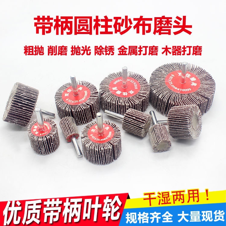 灿迪带柄叶轮磨头百叶轮纱布打磨头除锈纸圈人员监护真皮表带模具