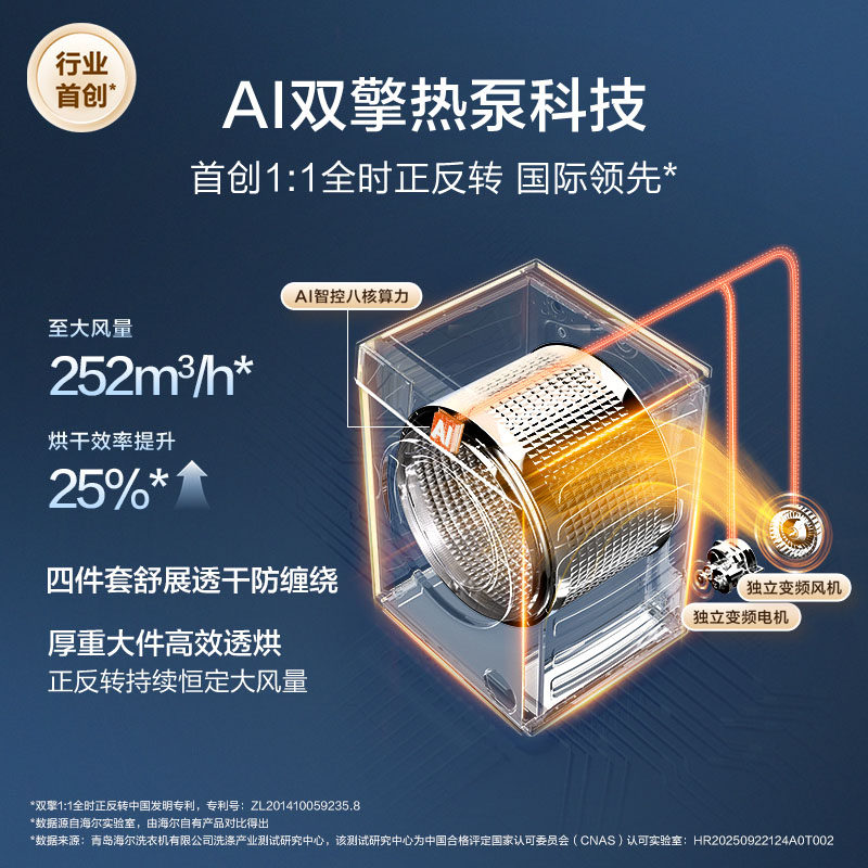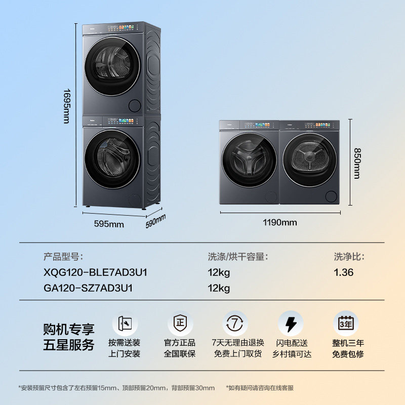 [云溪5.0 D3] 海尔高配新品大容量洗烘套装全自动双擎热泵洗衣机