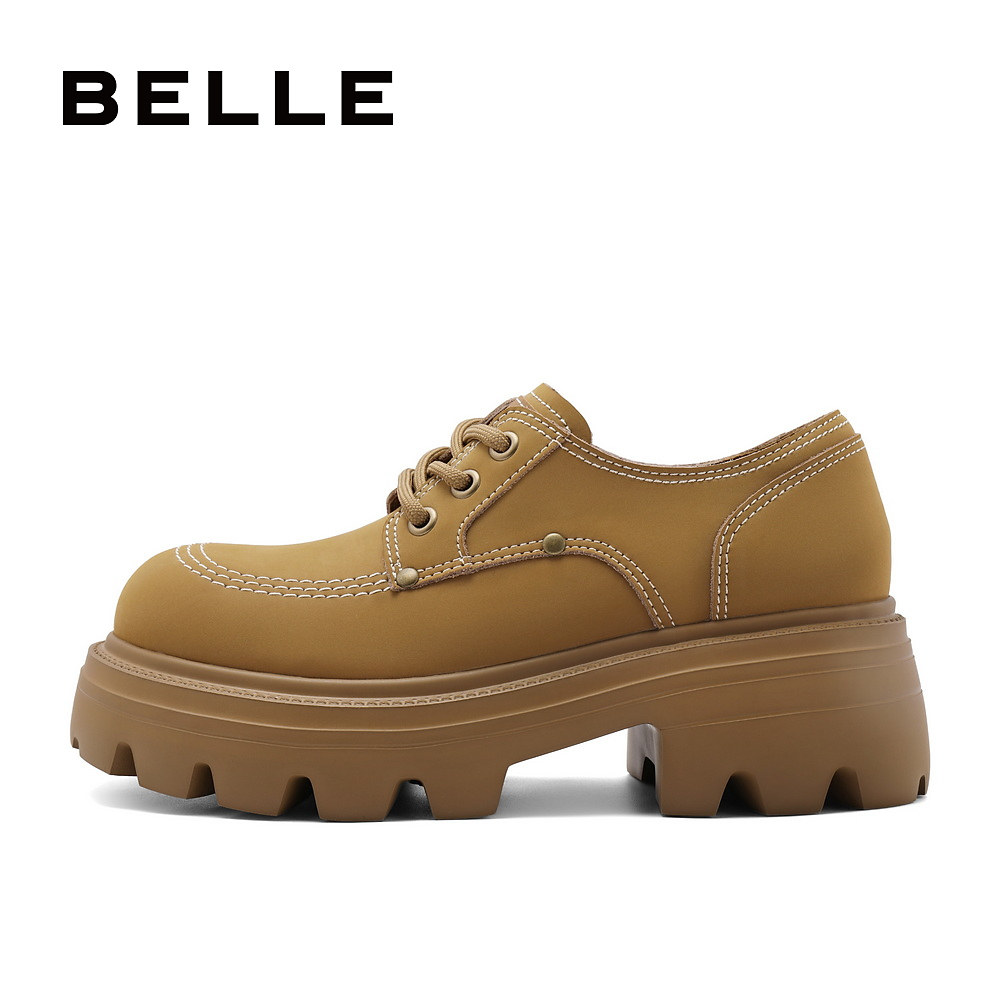 百丽女鞋子厚底复古牛津乐福鞋女新款小皮鞋深口单鞋子B1936CM4