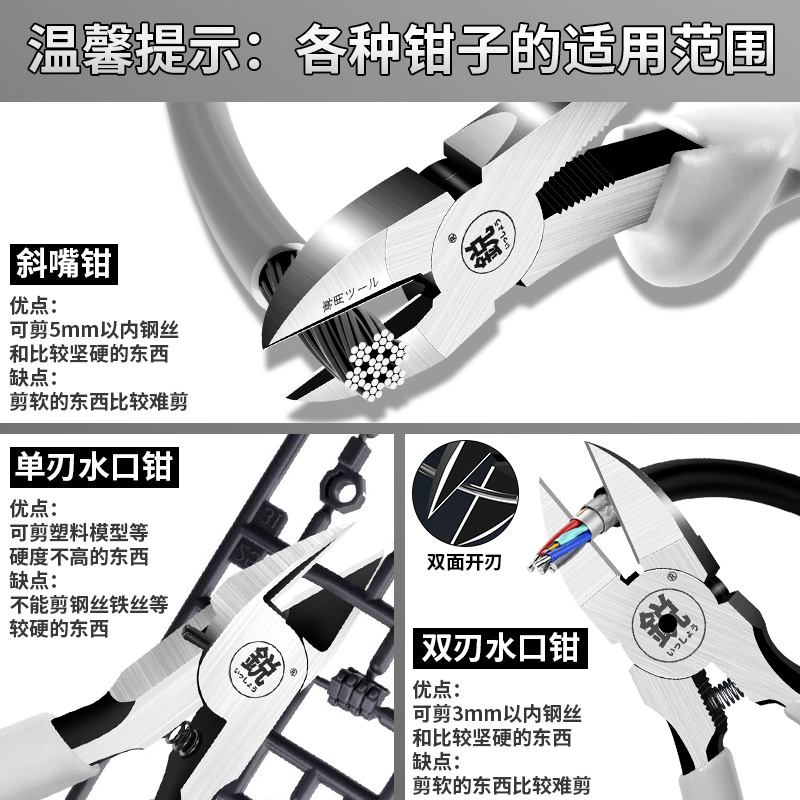 日本福冈水口钳钳子8寸偏口钳高达模型剪5寸小剪钳斜口钳