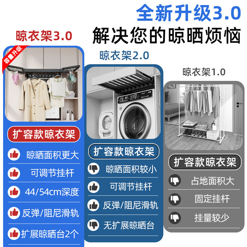 洗衣机抽拉式衣架隐形折叠晾衣架柜内裤架节省空间收纳翻倍扩容款