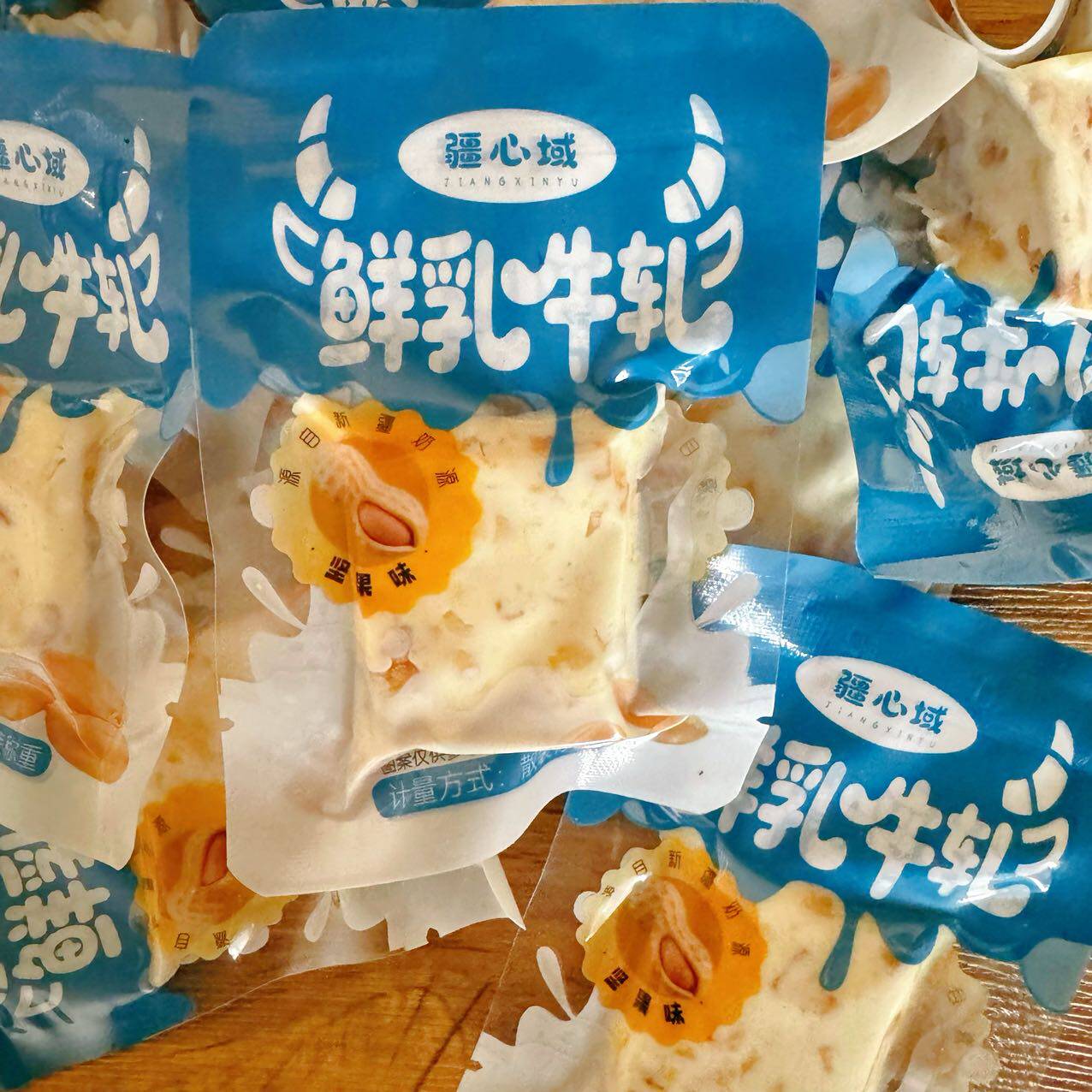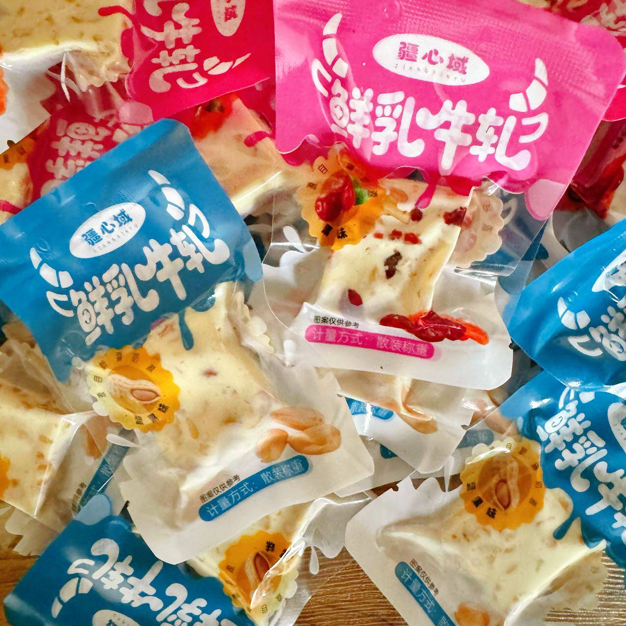 疆心域鲜乳牛轧坚果味果粒味牛轧糖拉丝奶糖新疆特产零食休闲小吃