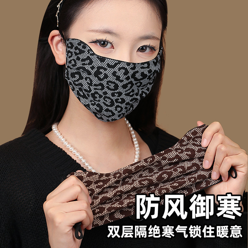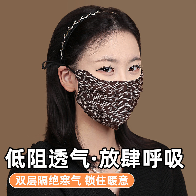 秋冬保暖口罩豹纹女高颜值新款防风防寒冬季口罩成人透气时尚面罩